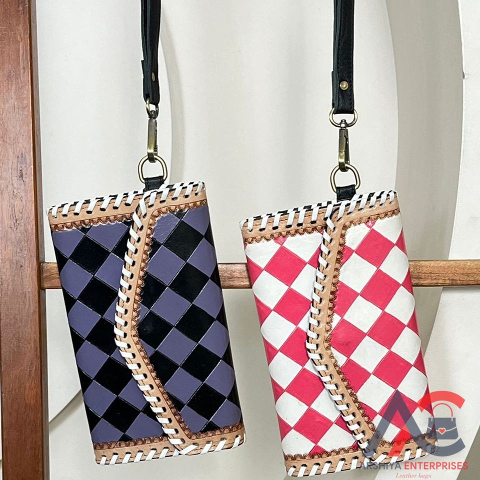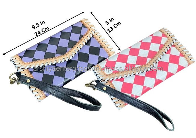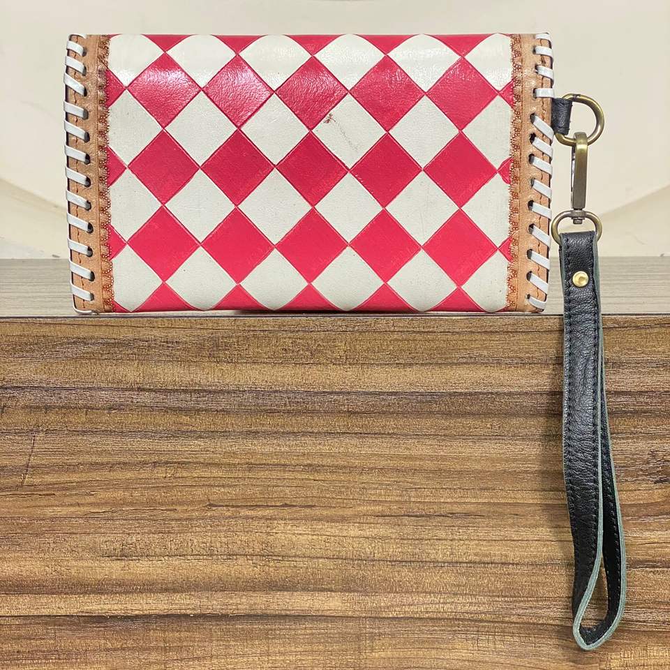 Product name:Hand Tooled Checkered Leather Wristlet Wallet