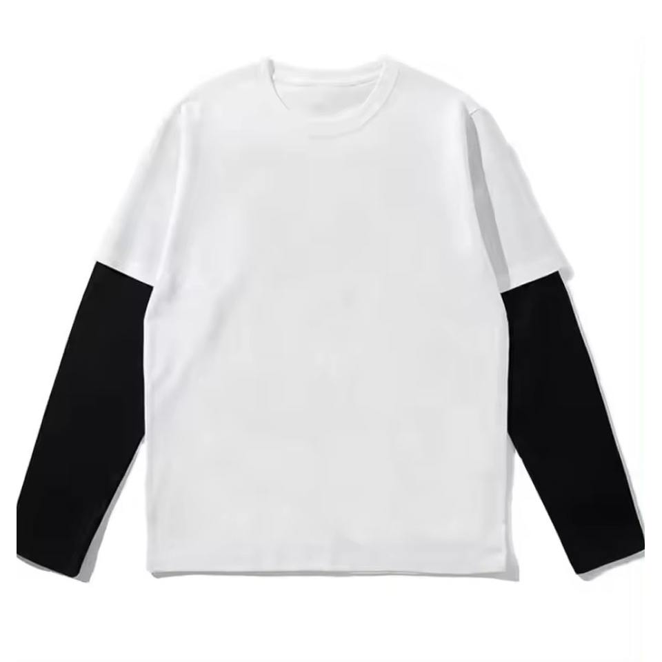 เสื้อยืดแขนยาว2-in-1สองชั้นสำหรับทุกเพศเสื้อยืดสองชั้นแบบเรียบโอเวอร์ไซส์สำหรับ100% ผลิตตามสั่ง