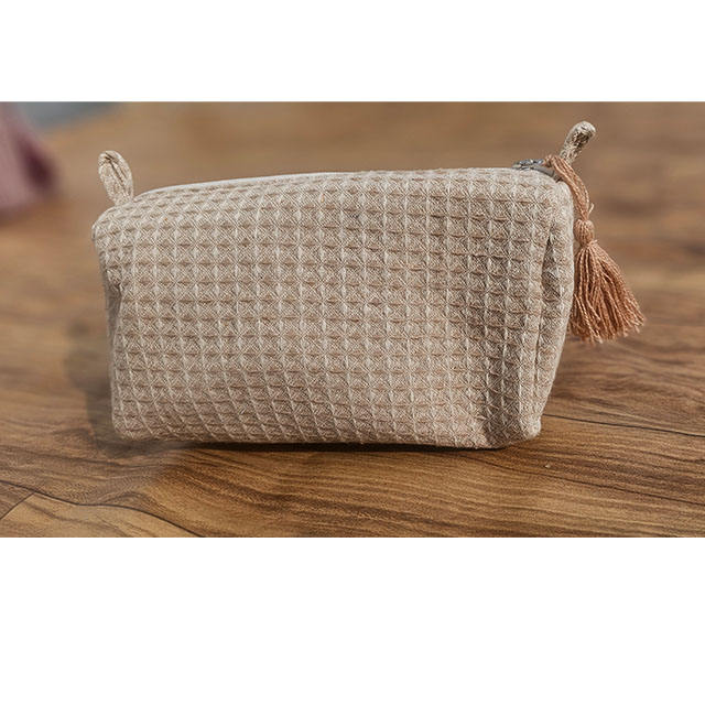 กระเป๋าเครื่องสำอางผ้าฝ้ายทอวาฟเฟิลสำหรับผู้หญิงและเพื่อนเจ้าสาวสีสันสดใส