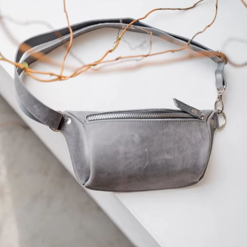 กระเป๋าคาดเอวหนังแท้สไตล์วินเทจสั่งทำขายส่ง กระเป๋าสะพายข้างผู้หญิงพร้อมช่องซิป รุ่น LCB-0087