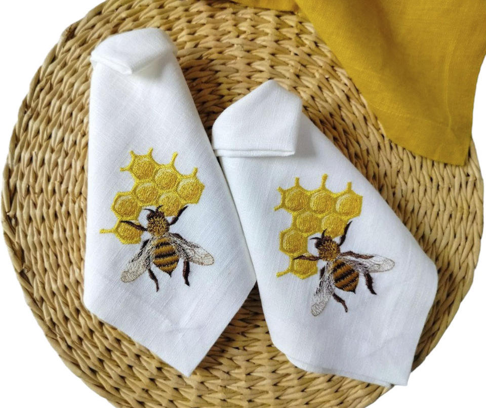 ผ้าเช็ดปากบนโต๊ะผ้าลินิน/ผ้าฝ้ายผสมสีเหลืองน่ารักปักลายสำหรับบ้านโรงแรมหรืองานอีเวนต์