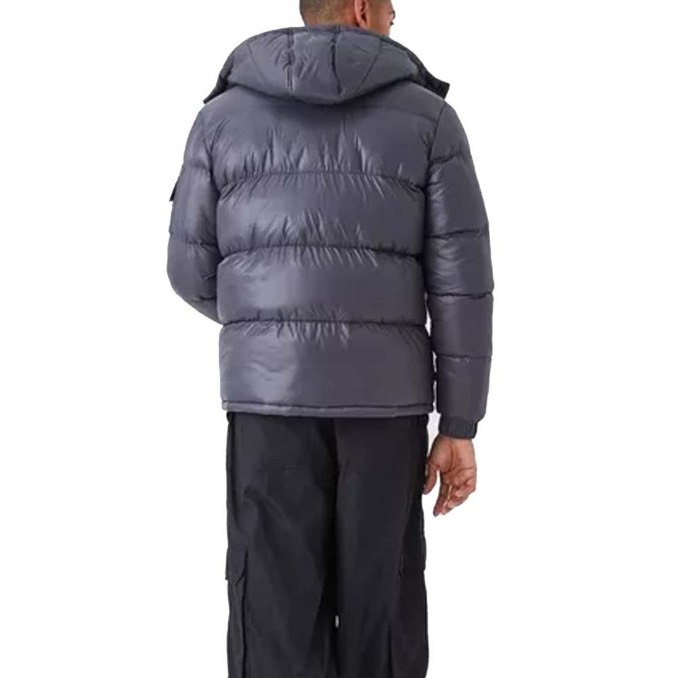 เสื้อแจ็คเก็ตพัฟเฟอร์ผู้ชายแบบโอเวอร์ไซส์สำหรับฤดูหนาว ผลิตตามสั่ง ขายส่ง ป้องกันลม คอตั้ง มีฮู้ด ระบายอากาศได้ดี แห้งเร็ว ผสมผ้าฝ้าย