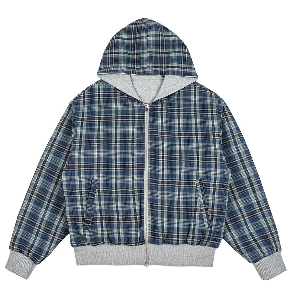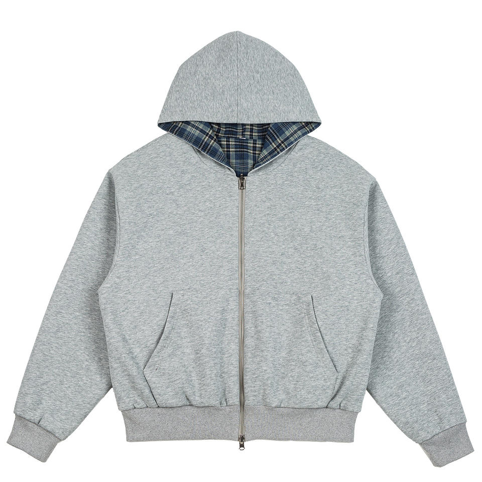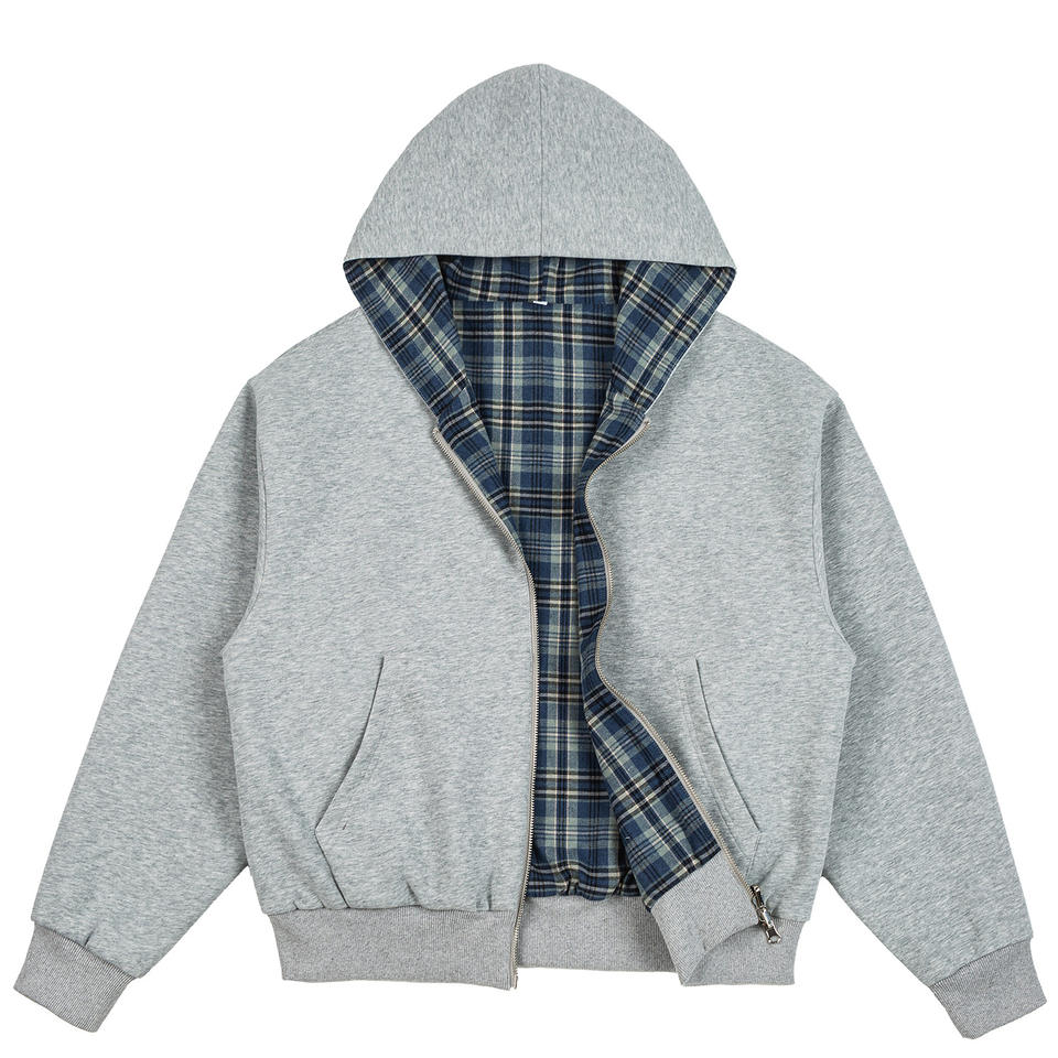 เสื้อกันหนาวผู้ชายแบบสั่งทำขายส่ง ทรงปกติ ไซส์ใหญ่ ลายสก็อต ซิปหน้า ผ้าถักหนานุ่ม ลายทางสองชั้น กลับด้านได้ ปักลาย 100%