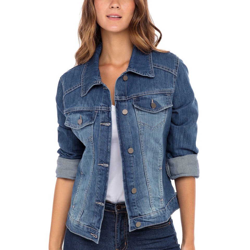 แจ็กเก็ตผ้ายีนส์สำหรับผู้หญิงแจ็กเก็ตผ้ายีนส์ผ้ายืดสีฟ้าสำหรับฤดูหนาว