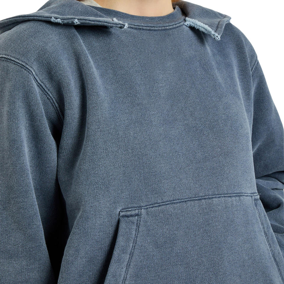 เสื้อฮู้ดดี้ผู้หญิงสั่งทำขายส่ง สไตล์วินเทจ ลุคทำเก่า แบบสวมหัว ผ้าเทอร์รี่ฟลีซ ขอบดิบ ปักตรา รับผลิตตามแบบ (OEM) เสื้อผ้าขายส่งจำนวนมาก