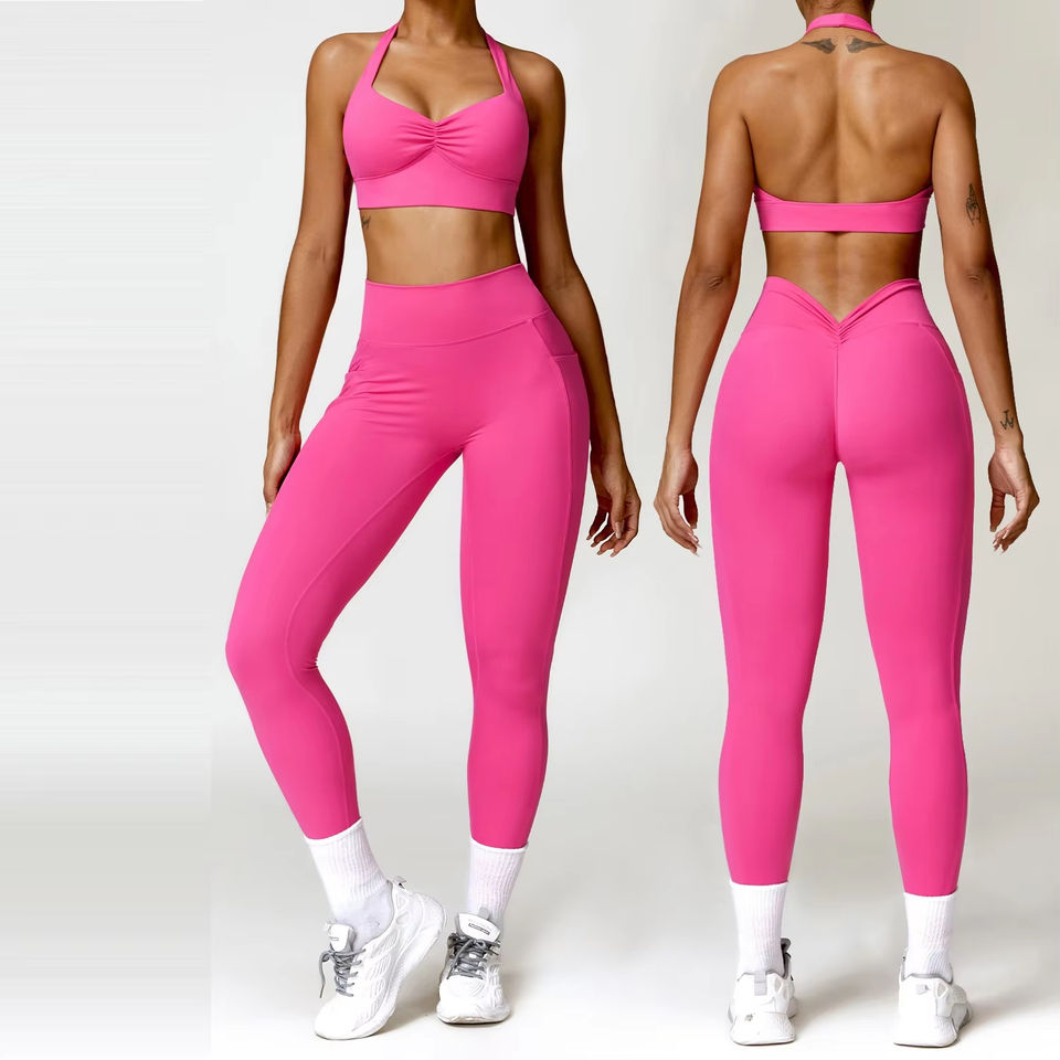 ชุดโยคะ2ชิ้นสำหรับผู้หญิงบราเอวด้านหน้าระบายอากาศได้กระชับก้น