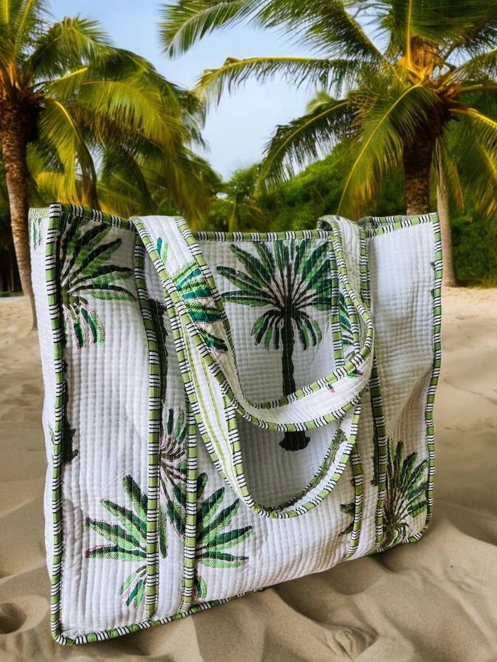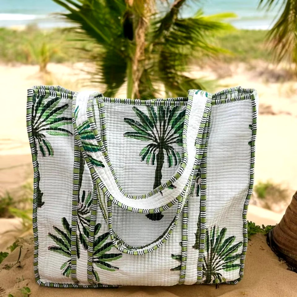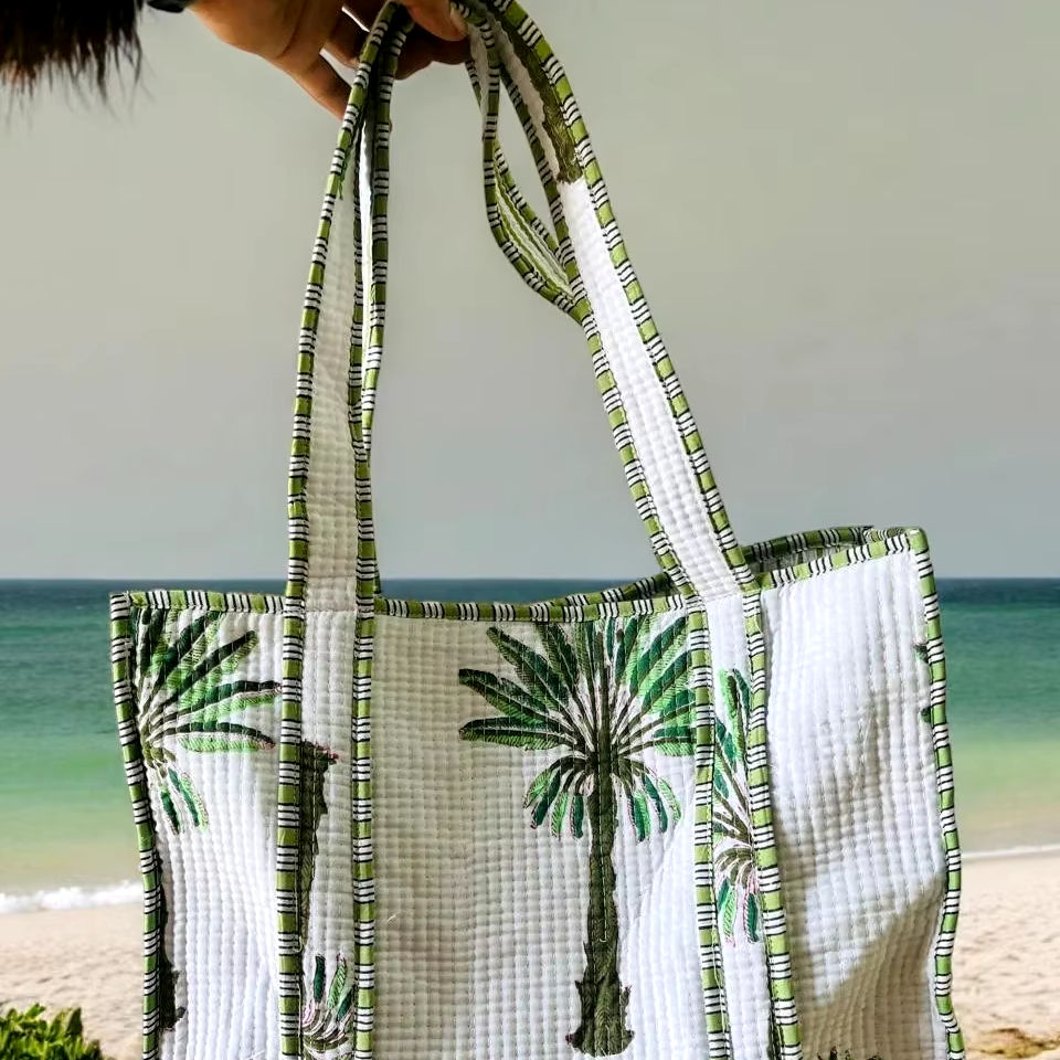 กระเป๋าโท้ทของผู้หญิงผ้าคอตตอนบุผ้าซับในพิมพ์ลายบล็อกตัวเลือกขายส่งสำหรับจัดระเบียบซักได้
