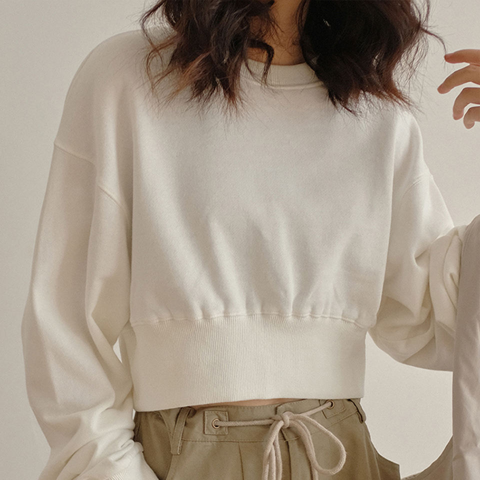 เสื้อสเวตเตอร์คอตตอนผสมของผู้หญิงเสื้อสวมหัวแขนยาวเสื้อครอปสำหรับใส่ในฤดูหนาวใช้งานตามสั่ง