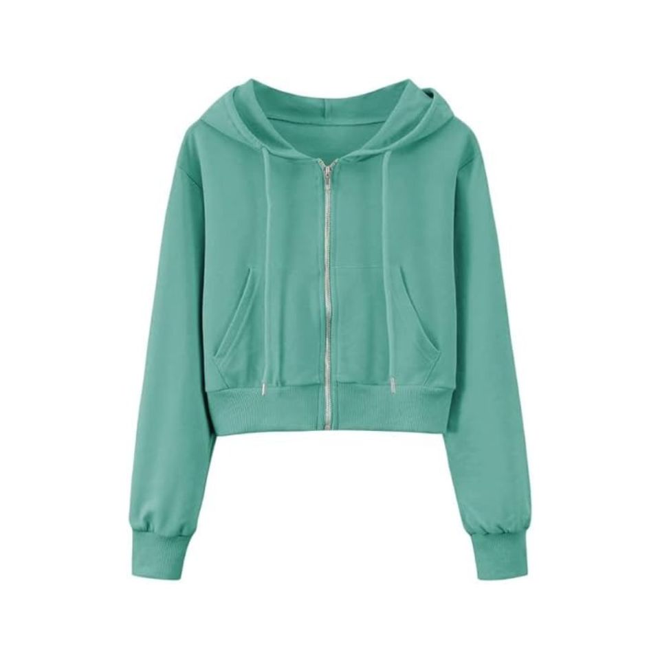 Product name:Women cotton terry long sleeve zip up cropped top hoodie