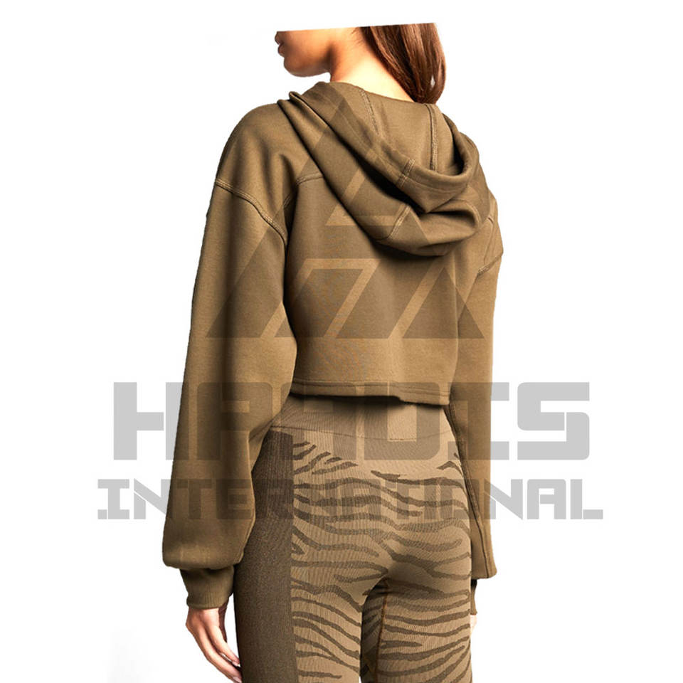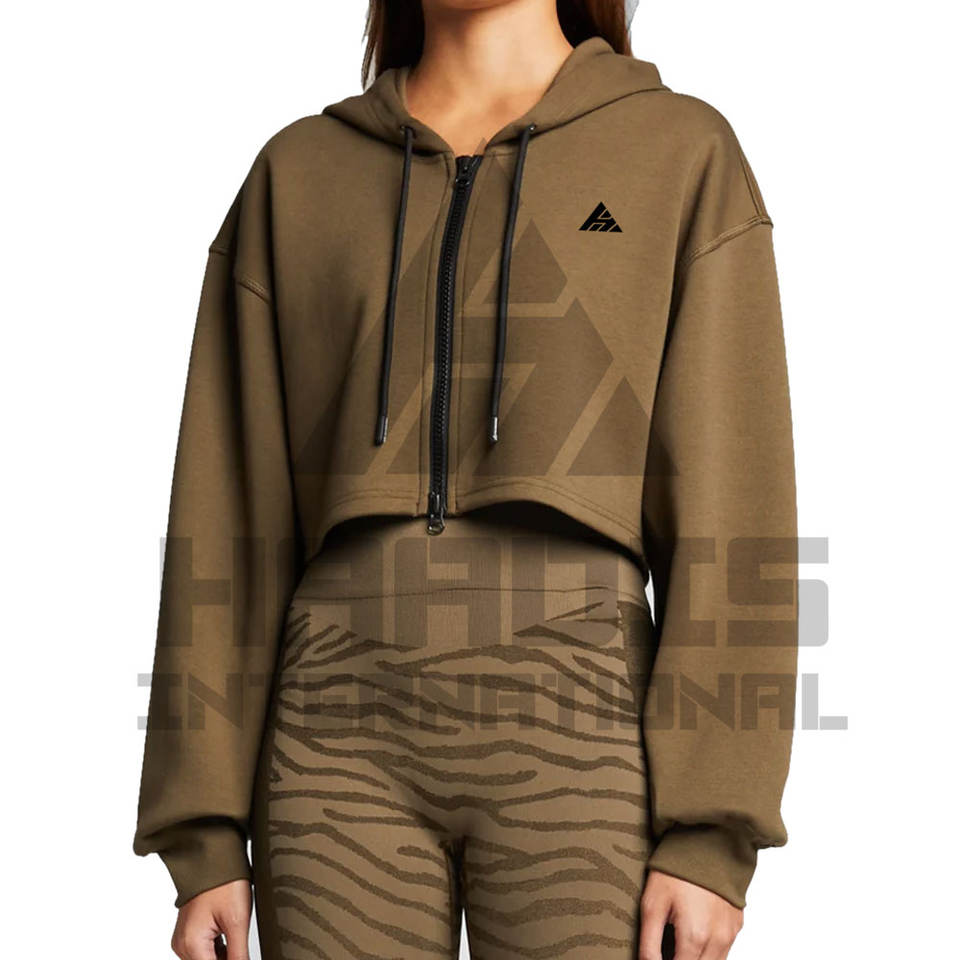 Wholesale Custom Women's Long Sleeve Zip Hoodies Sweatshirts Casual Workout Crop Tops with Size & Color Customization for Winter