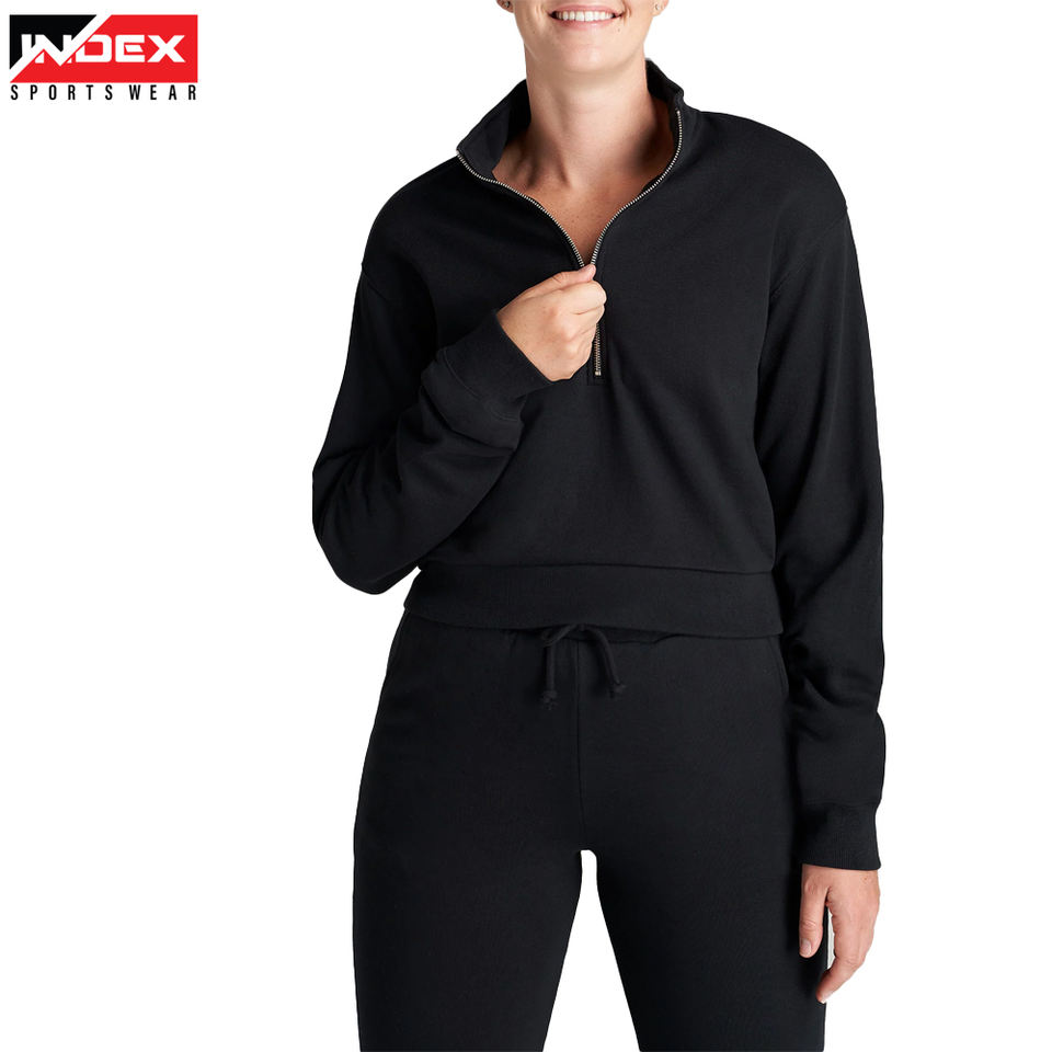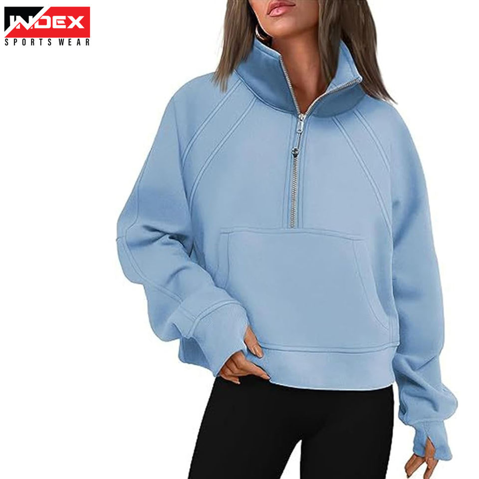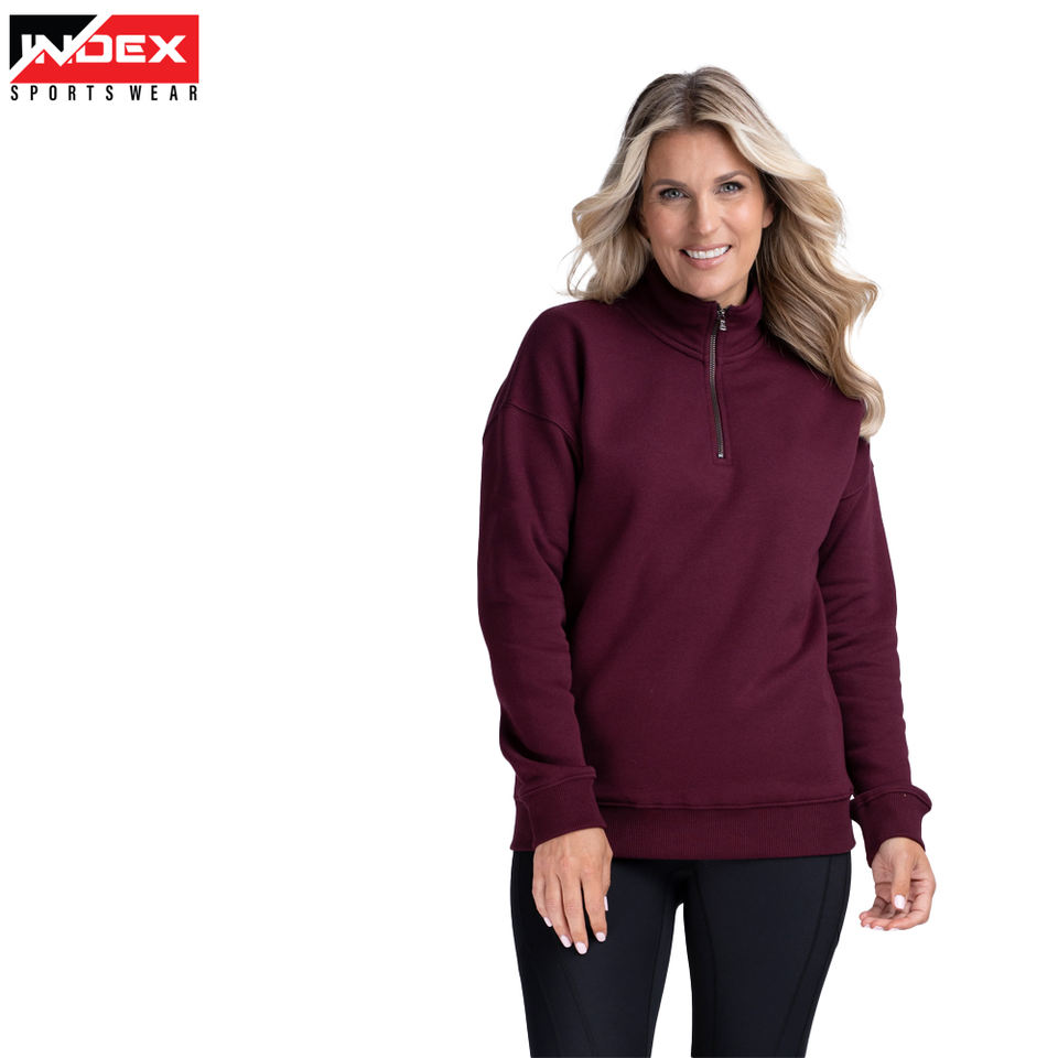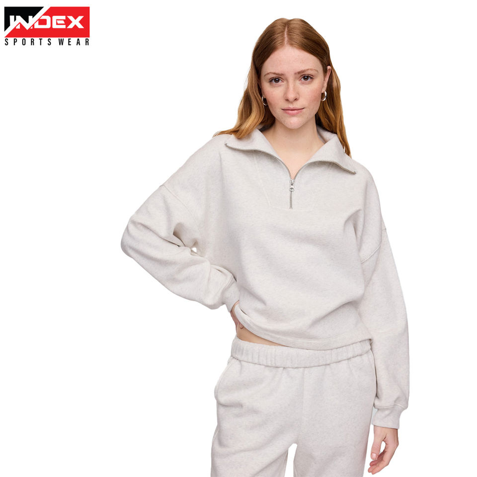 เสื้อสเวตเตอร์โอเวอร์ไซส์แบบรูดซิปครึ่งตัวสไตล์วินเทจของผู้หญิงออกแบบได้ตามต้องการมีปกตั้งสำหรับฤดูหนาว