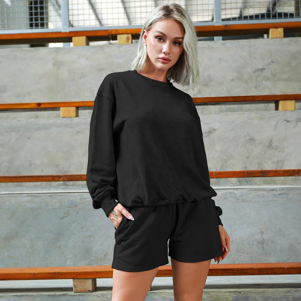 ชุดโยคะฤดูหนาวสำหรับผู้หญิงแบบขายส่งสั่งทำได้ รุ่นใหม่ล่าสุด เสื้อครอปแขนยาวแบบสวมหัว มีฮู้ด กางเกงขาสั้นออกกำลังกายทรงปกติ ลายมัดย้อม 100%