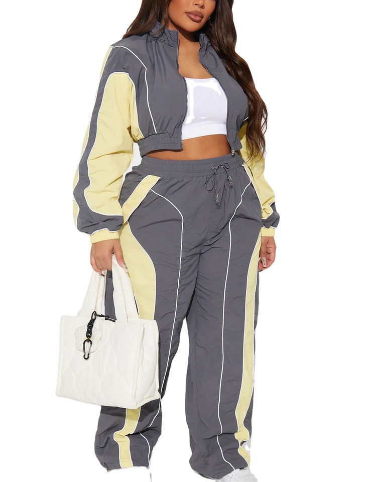 ชุดกีฬาผ้าไนลอน2ชิ้นสำหรับผู้หญิงชุดวอร์มและกางเกงขายาวออกแบบได้ตามต้องการ