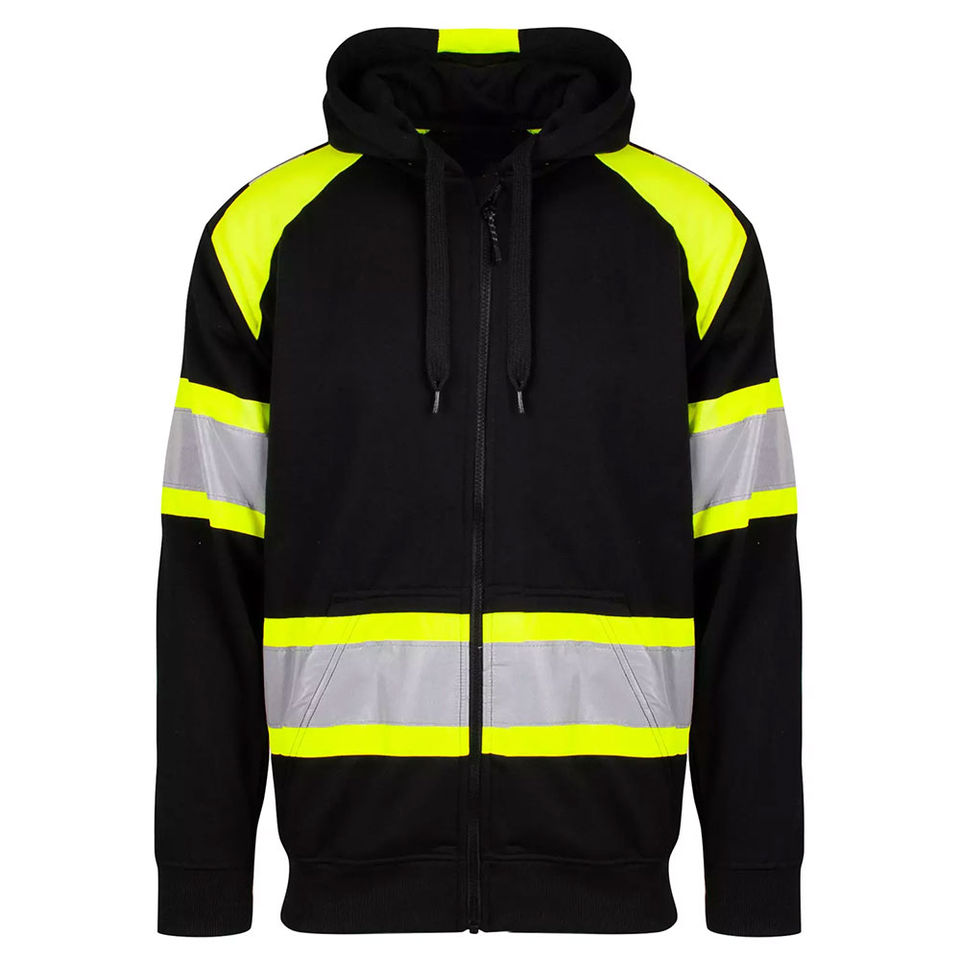 เสื้อฮู้ดสะท้อนแสงแบบกำหนดเองสำหรับงานก่อสร้าง เสื้อผ้าทำงานแบบขายส่ง เสื้อฮู้ดนิรภัยแบบมองเห็นได้ชัดเจนสำหรับผู้ชาย