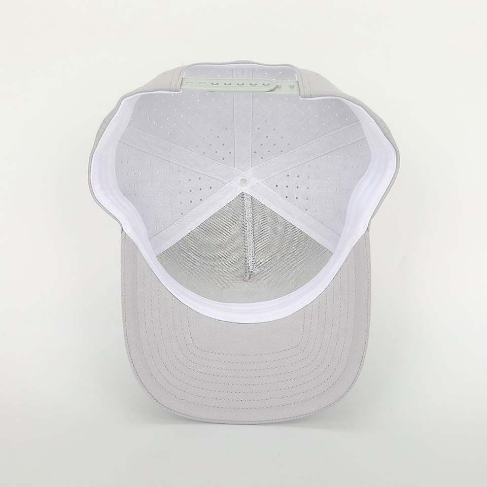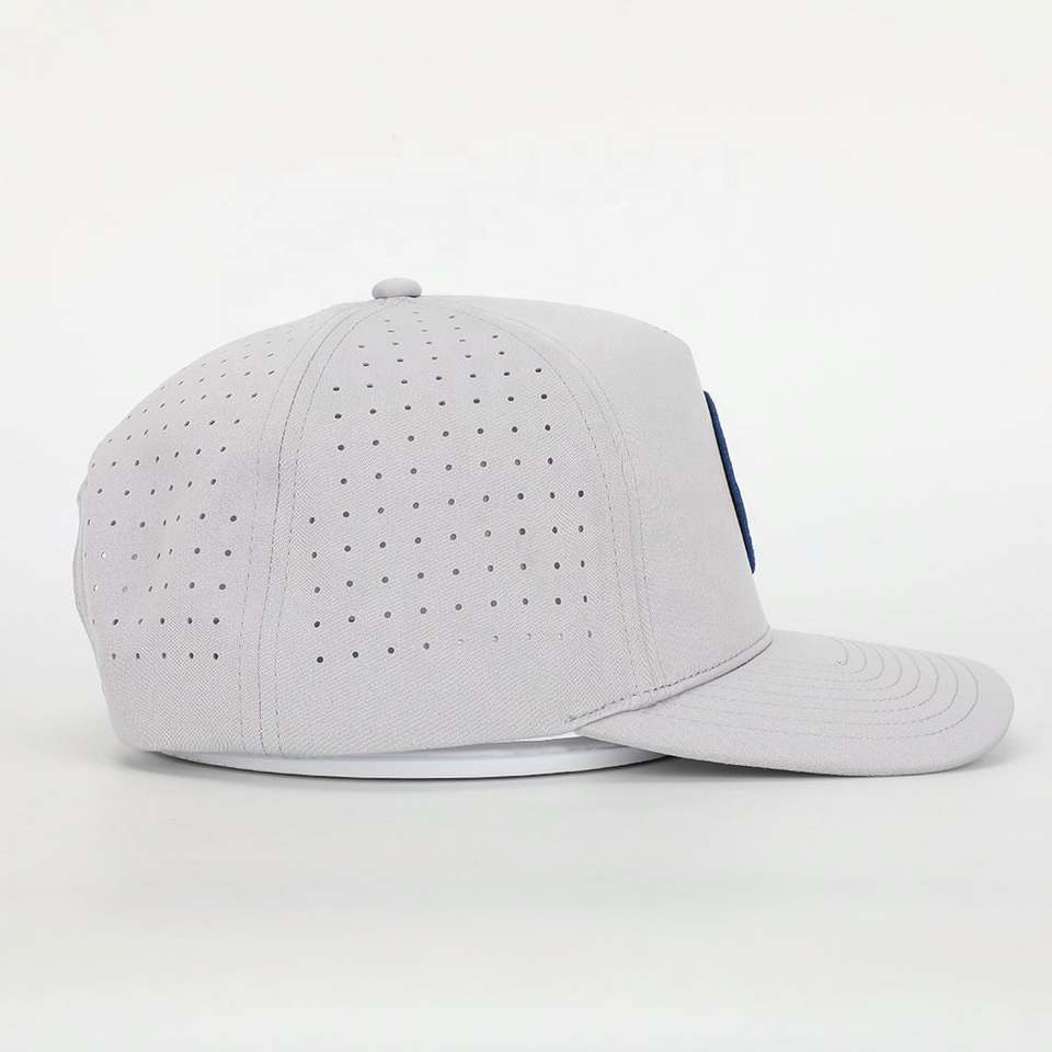 หมวกแก๊ปเบสบอลมีรูตัดด้วยเลเซอร์ Gorras โพลีเอสเตอร์สีเทา5แผงตามสั่ง