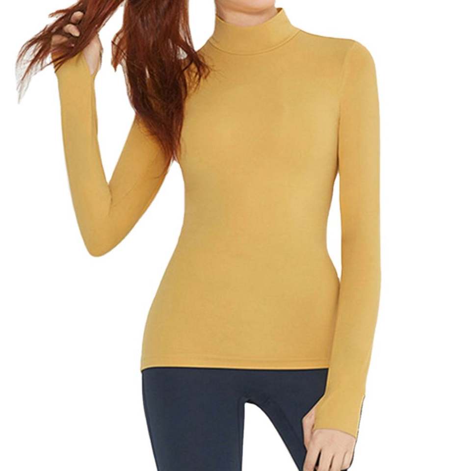 เสื้อยืดคอเต่าของผู้หญิงเสื้อยืดฟิตเนสแขนยาวสำหรับใส่เล่นกีฬาโยคะสั่งทำได้
