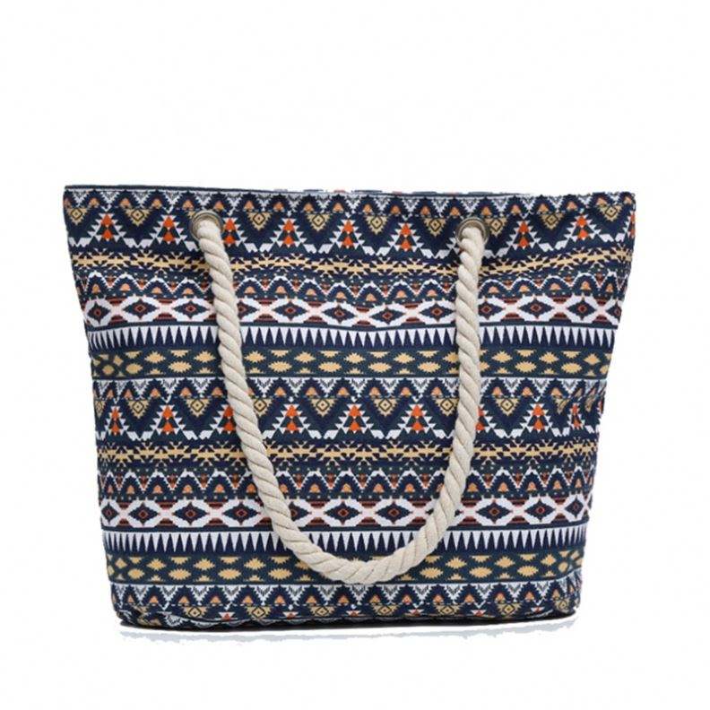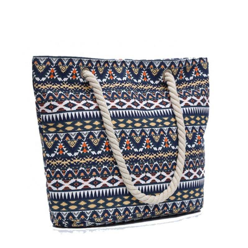 รายการ:ขายส่งกระเป๋าผ้าใบซิปฤดูร้อนกระเป๋าชายหาดพร้อมสายผ้าฝ้าย