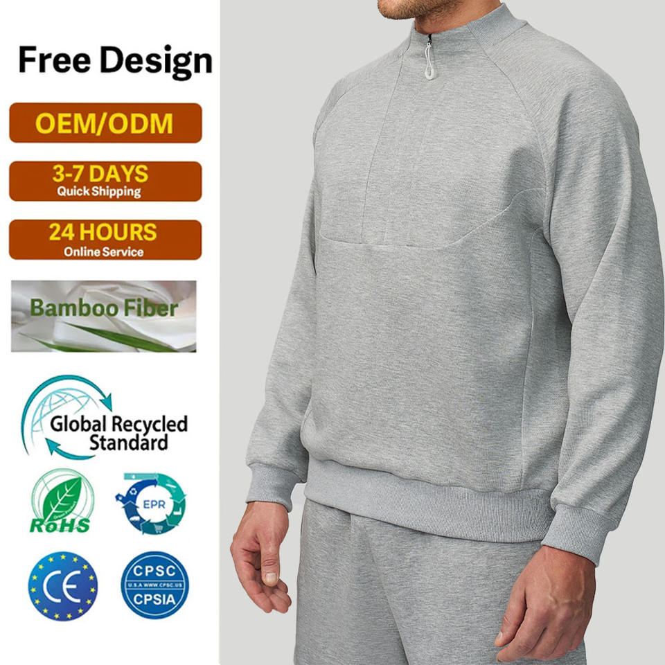 เสื้อกันหนาวมีฮู้ด350ใช้ได้ทั้งชายและหญิงผ้าฟลีซผสมคอตตอน GSM แบบไม่มีซิป