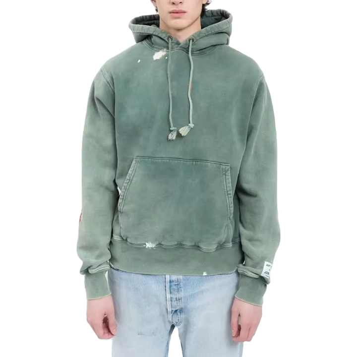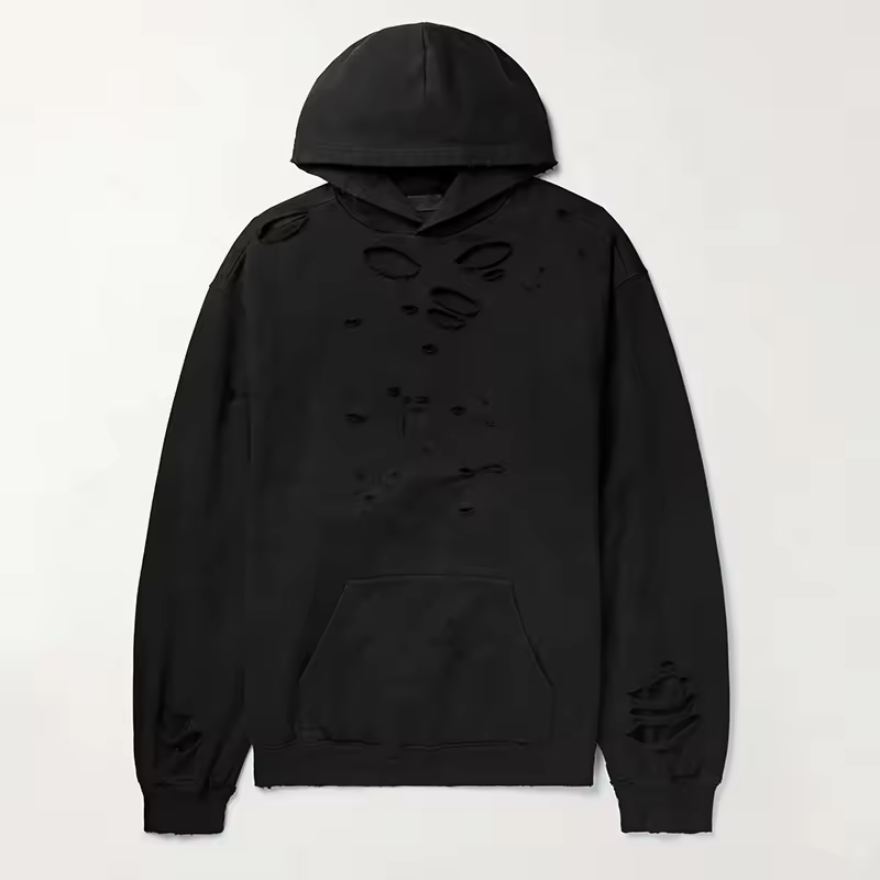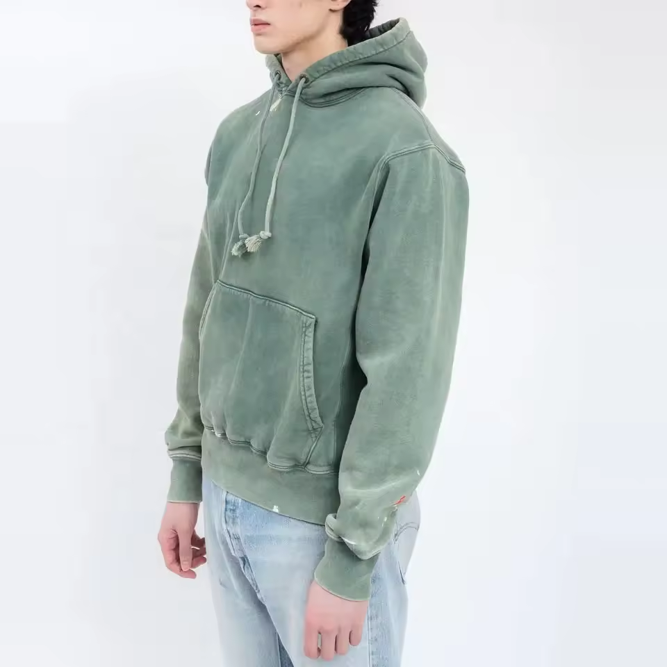 เสื้อฮู้ดผู้ชายทรงครอปแบบไม่มีสายเสื้อมีฮู้ด French Terry Fashion ผู้ชายวินเทจซักกรด