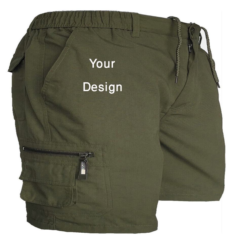 กางเกงขาสั้นผ้าชิโนสำหรับผู้ชายกางเกงขาสั้นคาร์โก้แบบมีหลายกระเป๋ากางเกงครึ่งขาสำหรับผู้ชายผลิตตามสั่ง