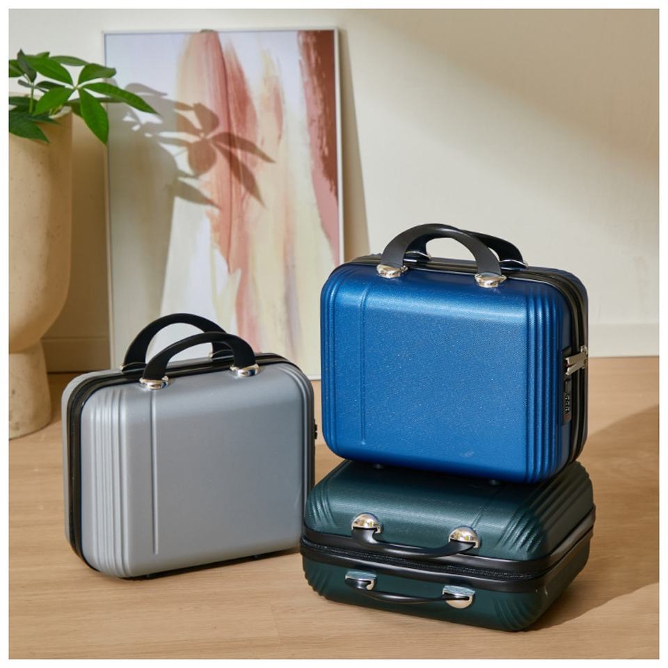 กระเป๋าเครื่องสำอางแบบพกพาขนาด 14 นิ้ว ผลิตตามสั่งพร้อมโลโก้ วัสดุ ABS พร้อมรหัสล็อค กล่องของขวัญส่งเสริมการขายความงาม กล่องใส่สัมภาระ