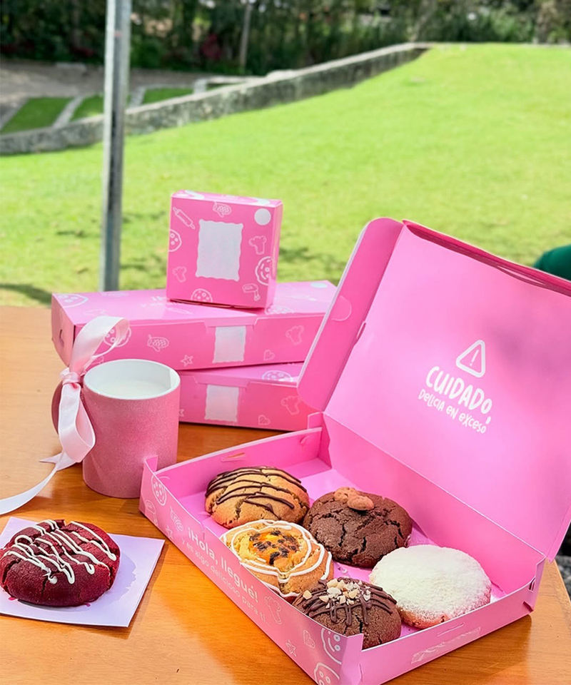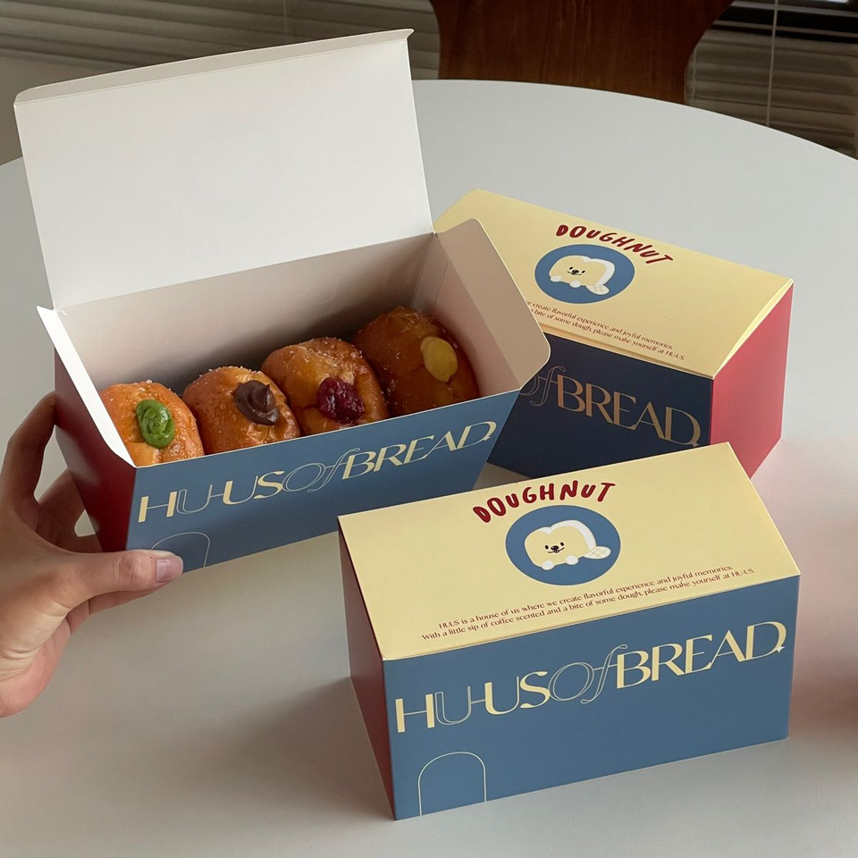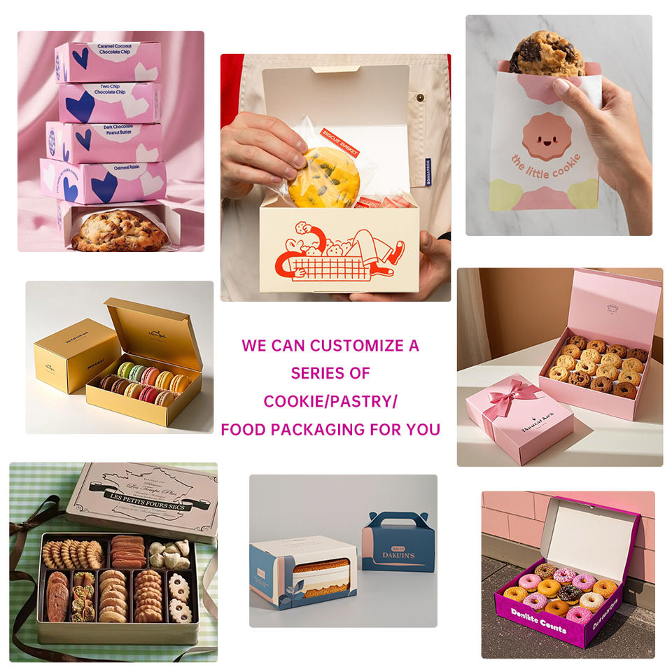 กล่องบรรจุภัณฑ์ขนมโมจิโดนัทสีชมพูสำหรับขายส่ง พิมพ์โลโก้ได้ตามต้องการ วัสดุเกรดอาหาร สำหรับส่งคุกกี้โดว์และคุกกี้