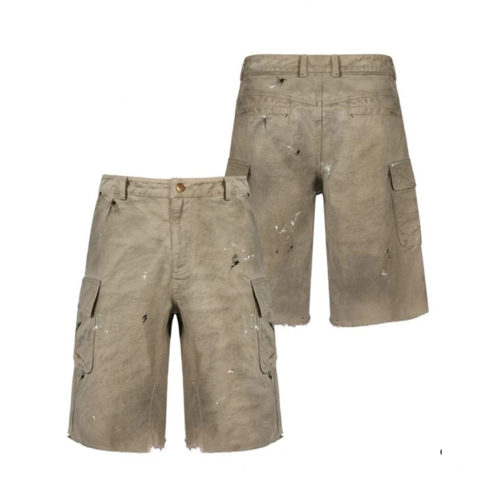 Wholesale Custom logo Bermuda Shorts 100% Cotton Streetwear Hip Hop Multi-pocket Men's Shorts Classic Dirty Cropped Overalls