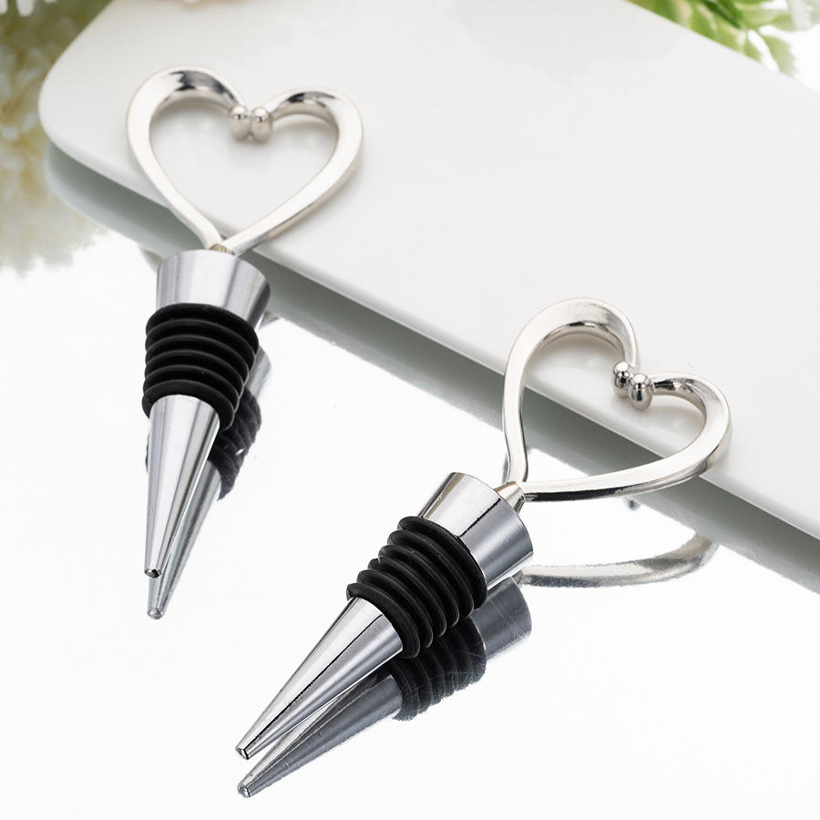 Wholesale Custom Logo Reusable Metal Heart Shaped Wine Bottle Stoppers Set with Vacuum Sealing