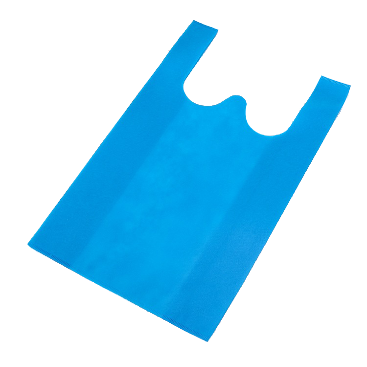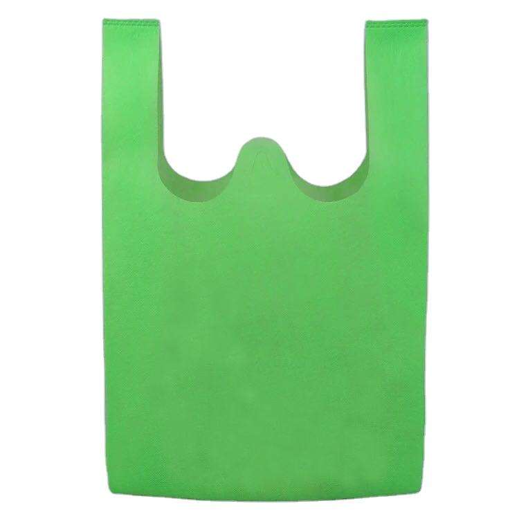 กระเป๋าเสื้อกั๊กเสื้อยืดผ้าใยสังเคราะห์แบบพกพาสำหรับช้อปปิ้งซูเปอร์มาร์เก็ตขายส่งโลโก้ที่กำหนดเอง