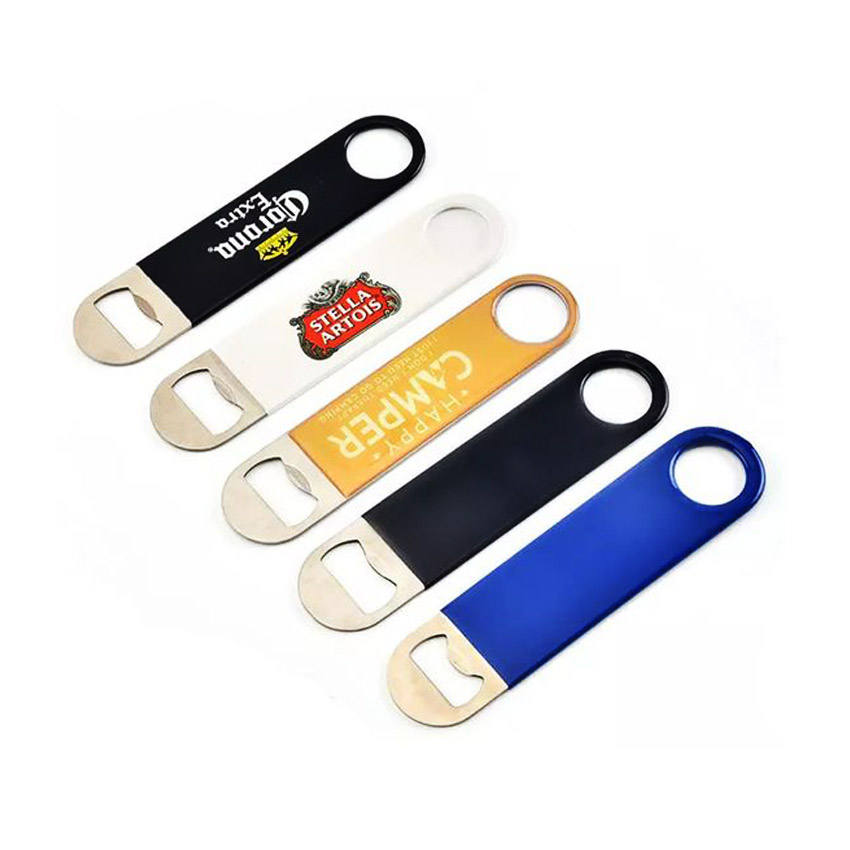 custom logo printed stainless steel flat bar blade beer bottle opener