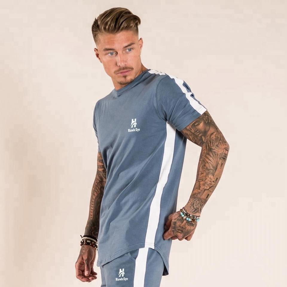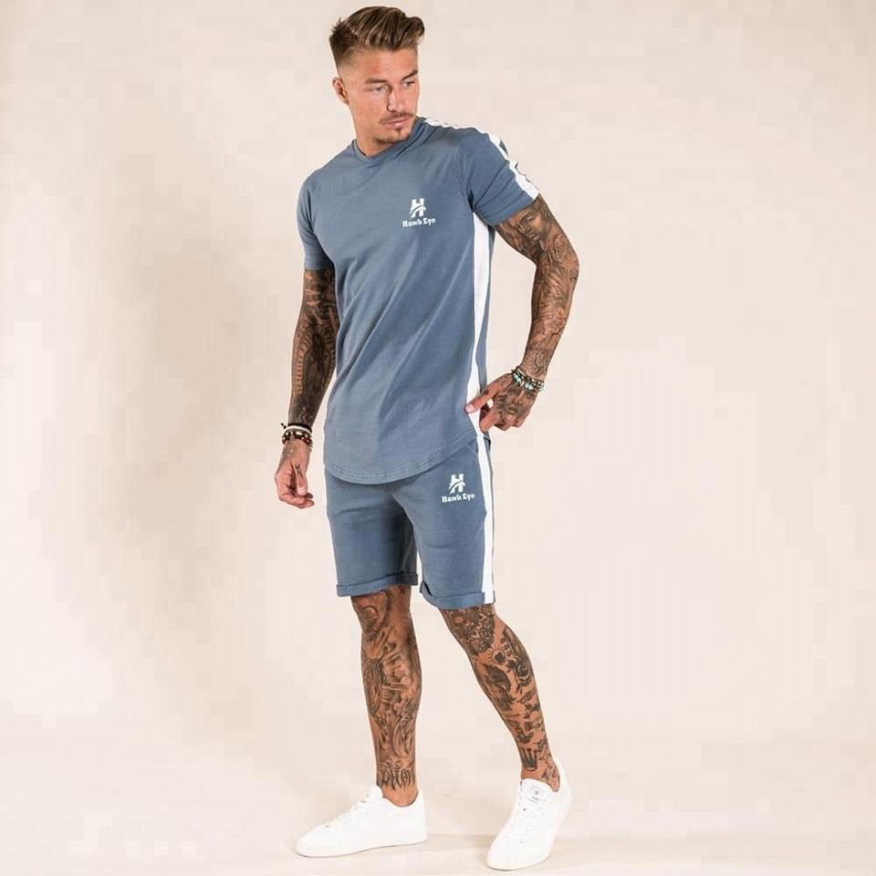 เสื้อยืดสำหรับผู้ชายชุดฝึกสั้นพิมพ์โลโก้แบรนด์ของคุณ