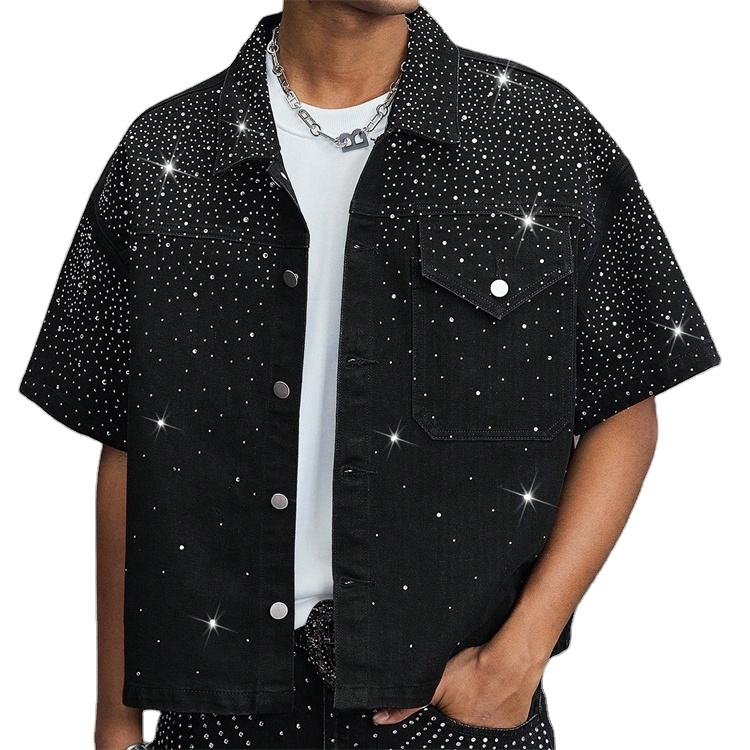 เสื้อเชิ้ตเดนิมลำลองผู้ชายแบบกระดุมแถวเดียว ตกแต่งด้วยคริสตัล รับออกแบบและสกรีนโลโก้ตามสั่ง ขายส่ง