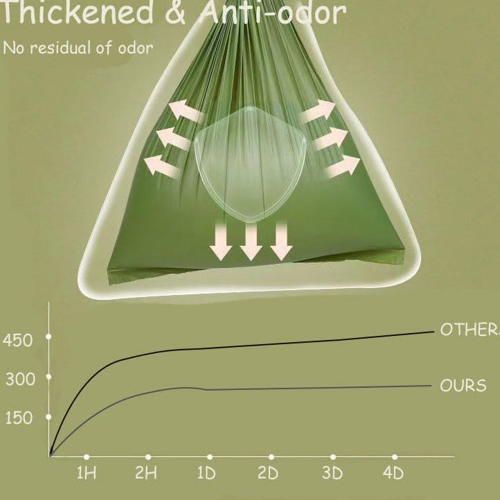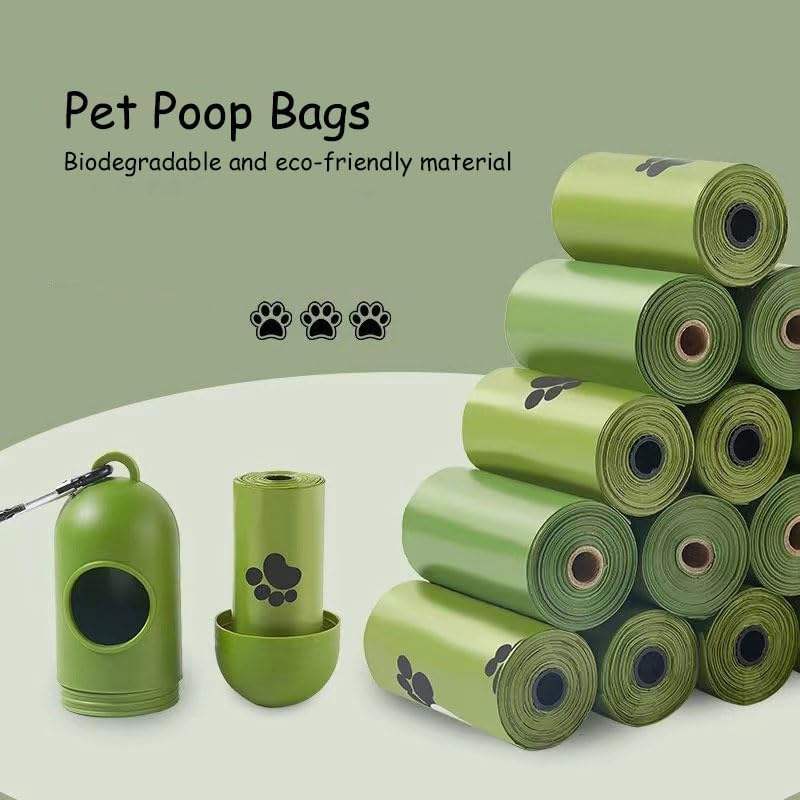 ถุงใส่ขี้สุนัขแบบกำหนดเองพร้อมโลโก้สุนัข ขายส่ง สีเขียว ย่อยสลายได้ทางชีวภาพ บรรจุ 270 ถุง/กล่อง