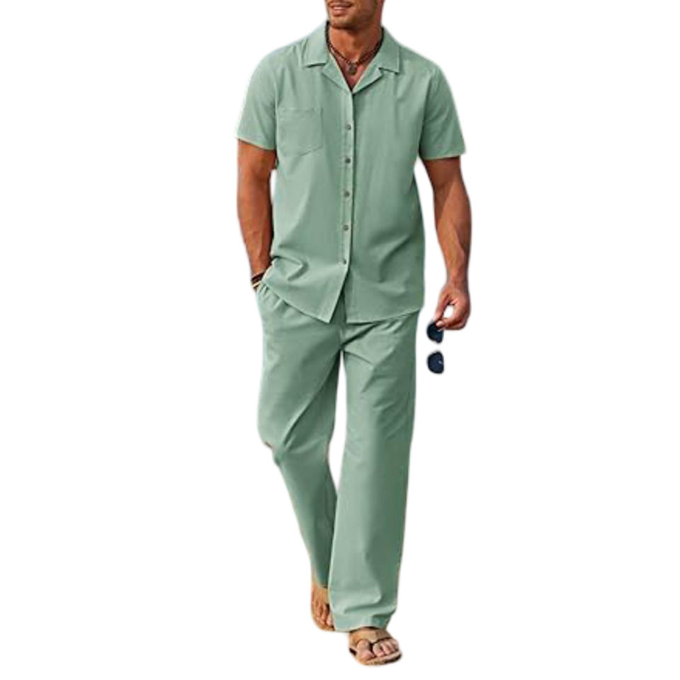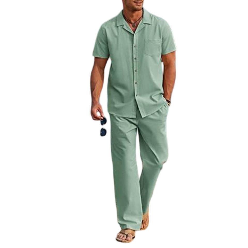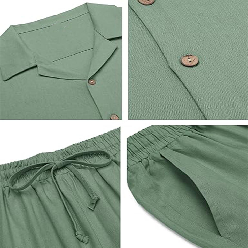 Wholesale Customizable Colors Men's Summer Formal 2-Piece Fleece Breathable Beach-Inspired Button Down Shirt Loose Pant Set