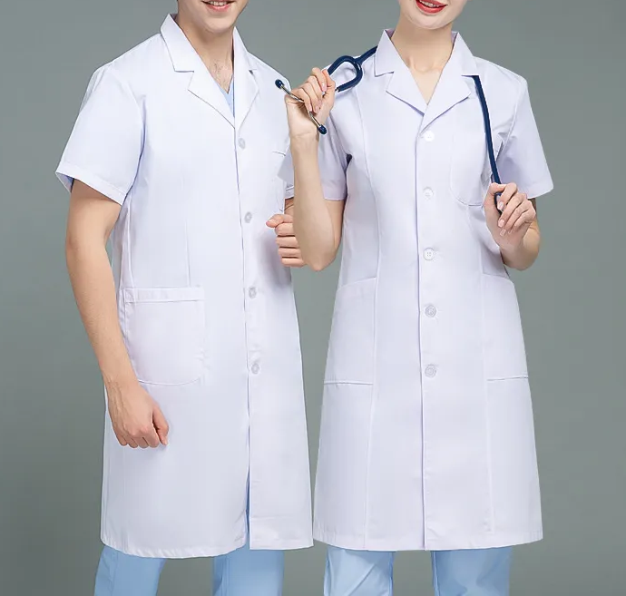 ชุดยูนิฟอร์มทางการแพทย์แบบขายส่ง ออกแบบได้ตามต้องการ ชุดแพทย์และพยาบาลแบบยูนิเซ็กซ์ เสื้อกาวน์แพทย์สีขาว