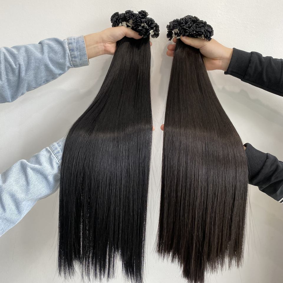 ผมต่อแบบตรงปลายแบนแบบปรับแต่งได้ผมต่อทำจากผมมนุษย์ติดหนังกำพร้าเรียงเหมือนไม่ผ่านกระบวนการไม่พันกันหลุด