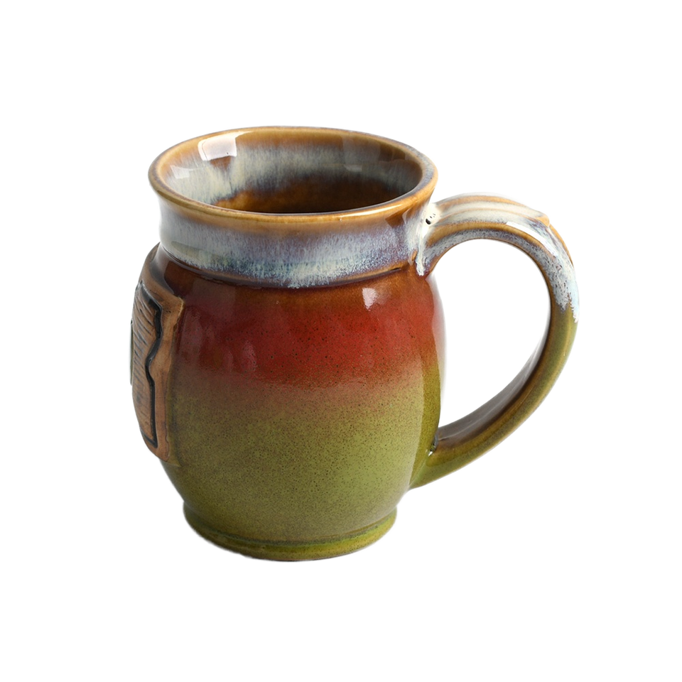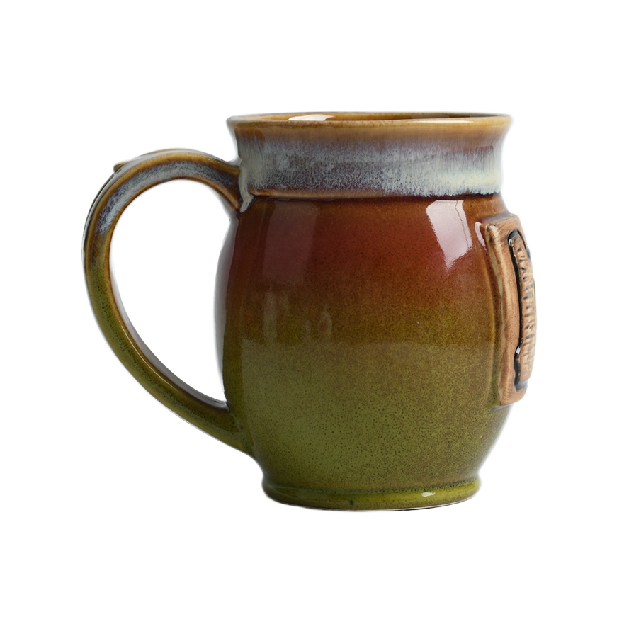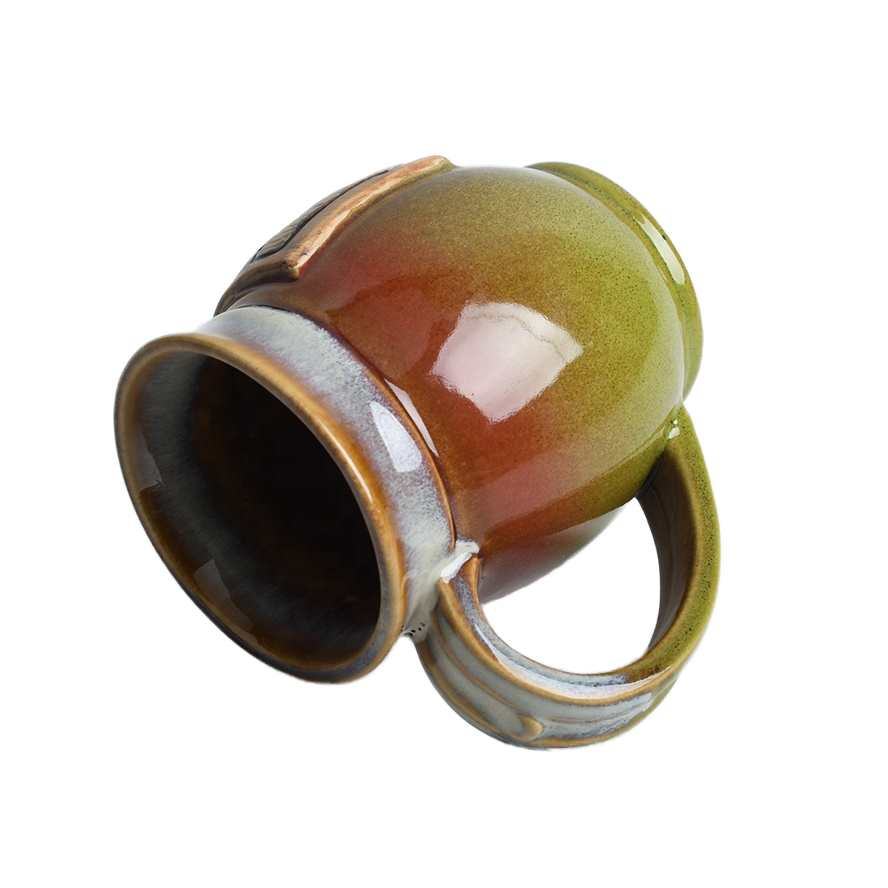 แก้วเซรามิคลายนูนสำหรับให้เป็นของขวัญถ้วยเซรามิกเคลือบสีเขียวน้ำตาลทำด้วยมือโลโก้ได้ตามต้องการ