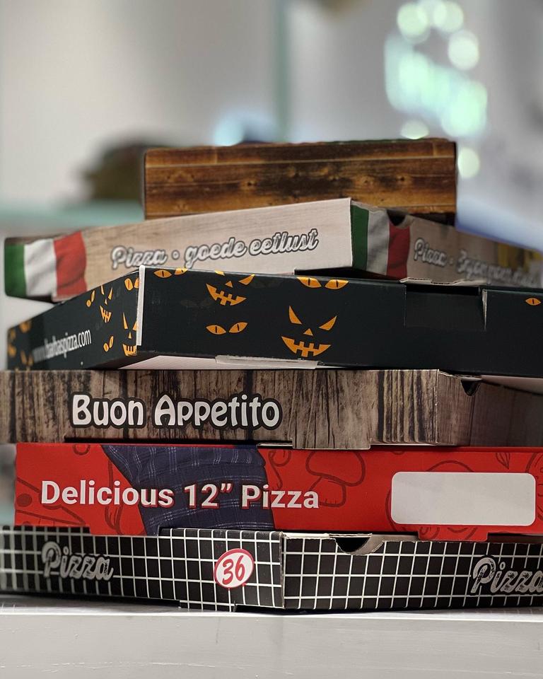 กล่องพิซซ่ากระดาษลูกฟูกพิมพ์โลโก้ตามสั่ง ขายส่ง รีไซเคิลได้ สีขาว สีน้ำตาล คราฟท์ พิมพ์เฟล็กโซ สำหรับบรรจุอาหารและจัดส่ง