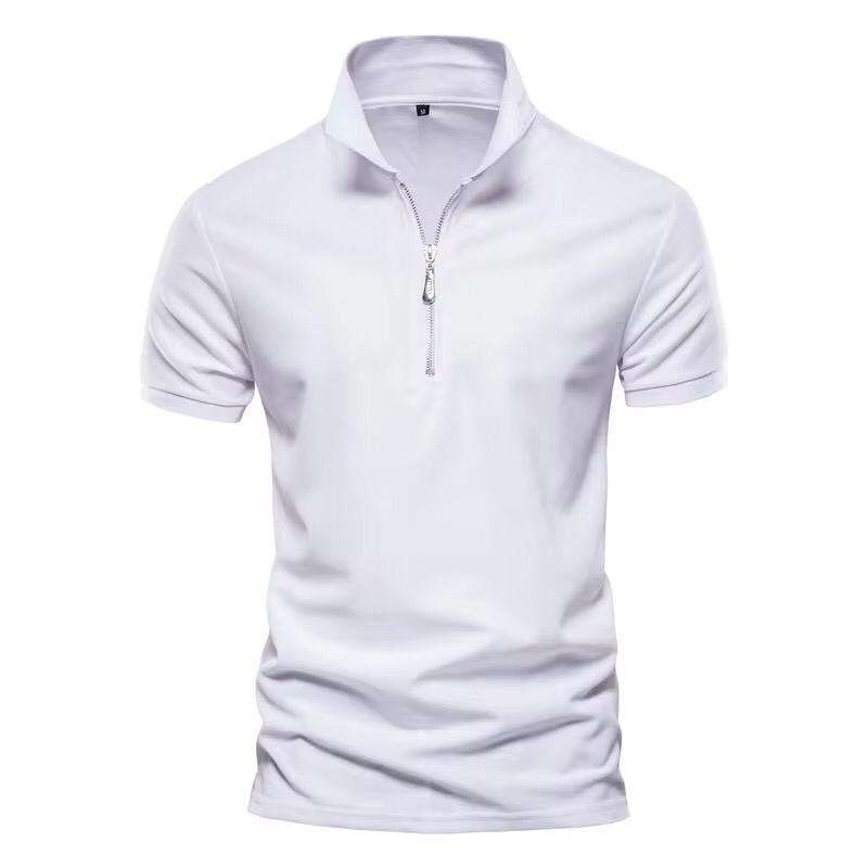 เสื้อโปโลแขนสั้นซิปครึ่งแสงของผู้ชายปรับแต่งได้ลูกปัดสไตล์ลำลองใหม่มีดีไซน์สีพื้น