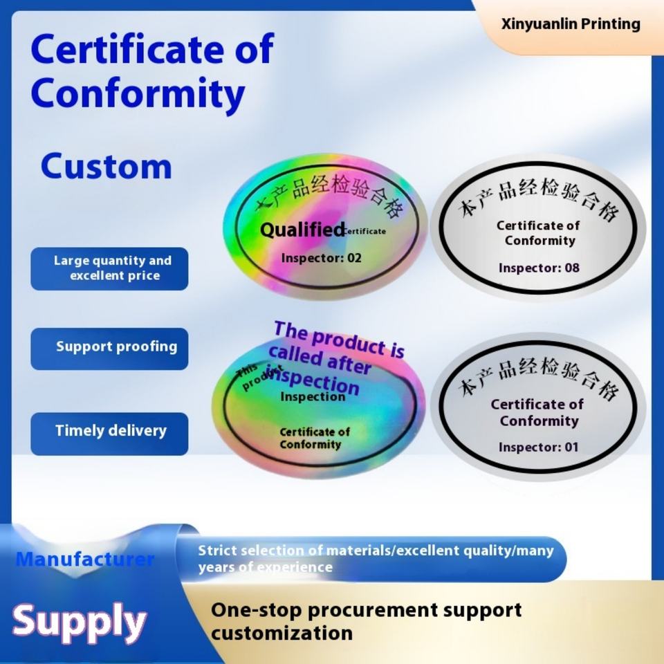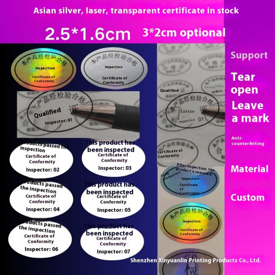 Wholesale Customizable Silver Seal PET Adhesive Sticker Laser Qualification Certificate for Product Inspection Candles Crafts