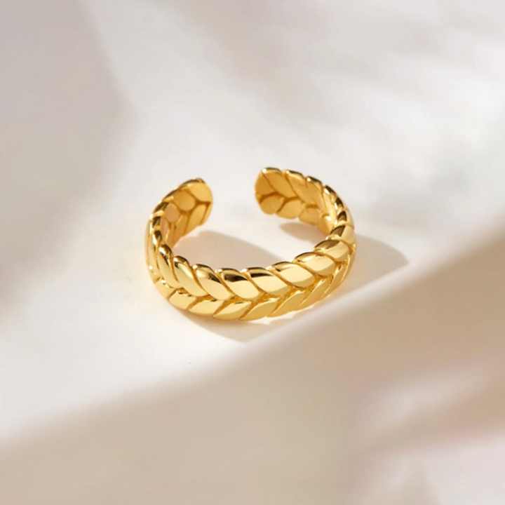 แหวนข้าวสาลีสแตนเลสสตีลสำหรับผู้หญิง ดีไซน์ทันสมัย ชุบทอง 18K PVD รับผลิตตามสั่งขายส่ง
