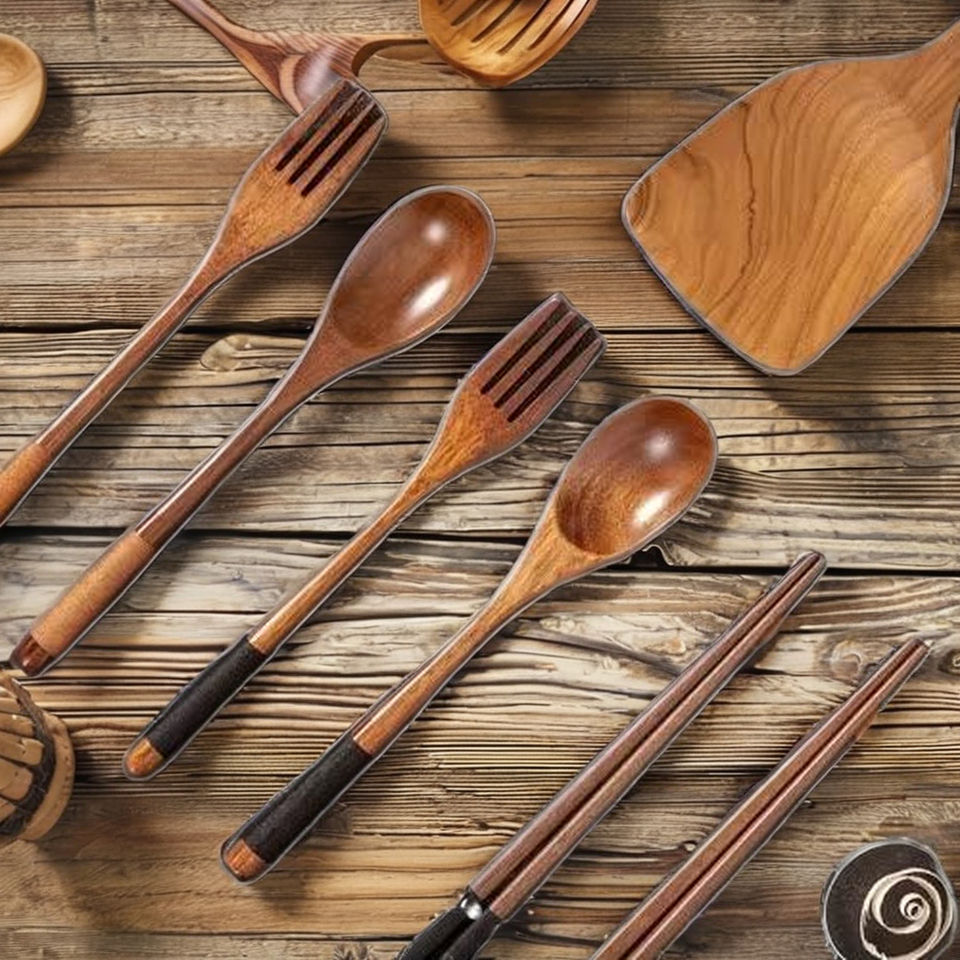 ชุดเครื่องใช้บนโต๊ะอาหาร5ชิ้นทำจากไม้ไผ่แบบยั่งยืนปรับแต่งได้