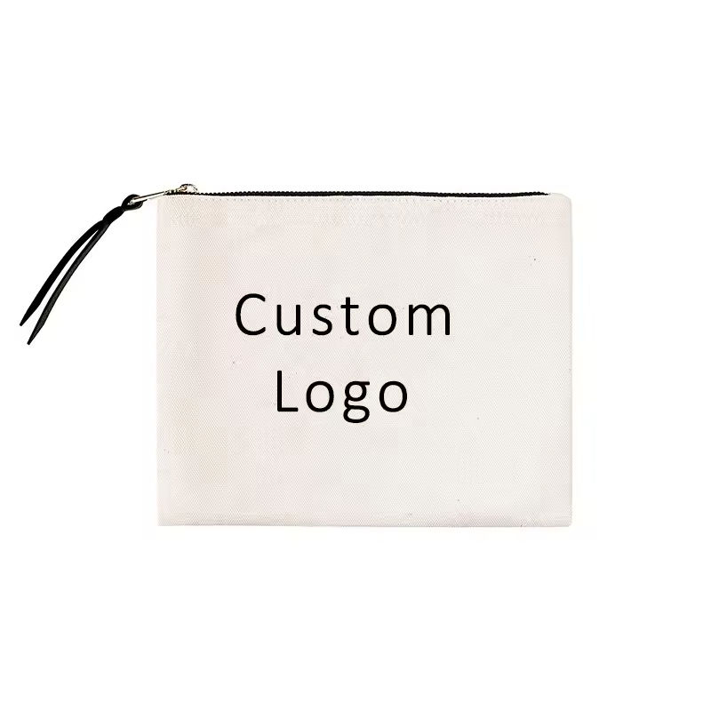 กระเป๋าซิปผ้าฝ้ายแบบเรียบสำหรับใส่เครื่องสำอาง แบบขายส่ง ปรับแต่งได้ ใช้ซ้ำได้ กระเป๋าใส่เครื่องสำอางแบบกำหนดเองได้