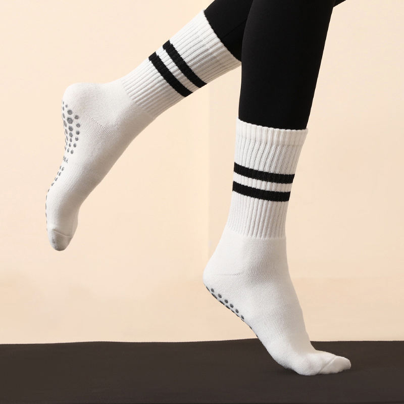 ถุงเท้ายาวสำหรับเล่นกีฬาไม่มีกาวป้องกันลื่นทำจากผ้าฝ้าย100% ปรับแต่งได้