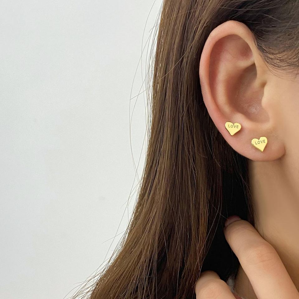 ต่างหูแบบติดหูรูปหัวใจเล็กๆ ชุบทอง 18K สลักลายด้วยเลเซอร์ สำหรับผู้หญิง รับผลิตตามสั่งขายส่ง