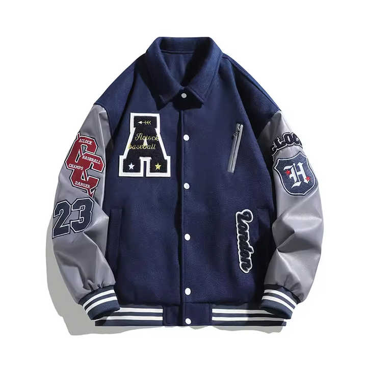รับผลิตเสื้อแจ็คเก็ต Letterman แบบขายส่ง คุณภาพพรีเมียม สำหรับผู้ชาย แบบ Varsity Letterman สำหรับวิทยาลัย/เบสบอล พร้อมบริการพิมพ์ลาย