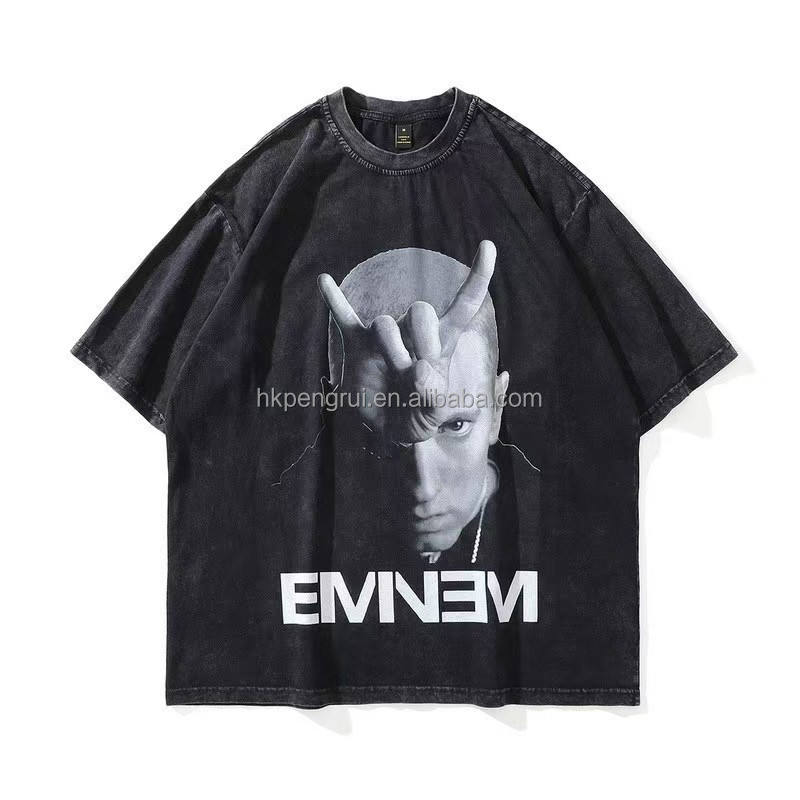 เสื้อยืดปักลายดิจิทัลสำหรับผู้ชายสไตล์ Y2K วินเทจผ้าฝ้ายเฮฟวี่เวท