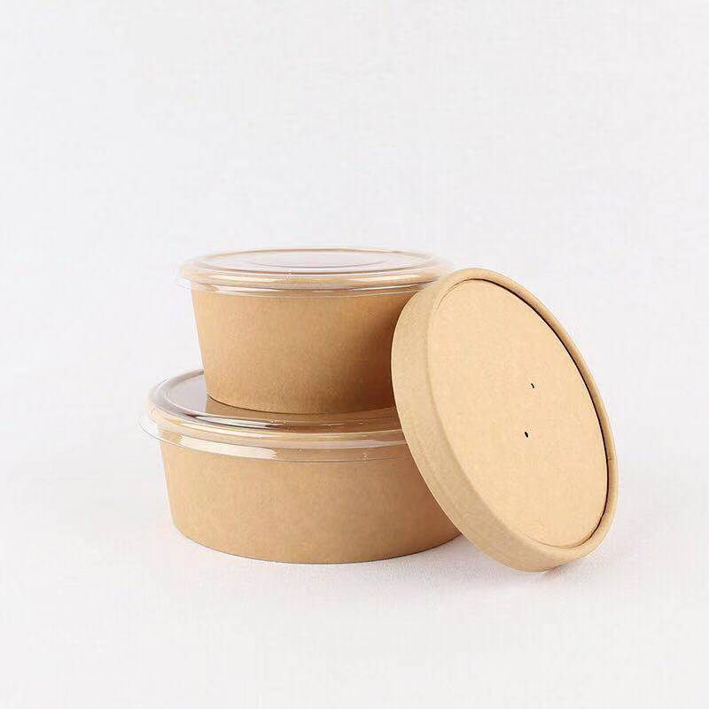 ถ้วยกระดาษคราฟท์ผนังเดียวกล่องอาหารหนาแบบปรับแต่งได้ถ้วยสลัดอาหารสัตว์เลี้ยงฝาปิดสำหรับใส่อาหาร