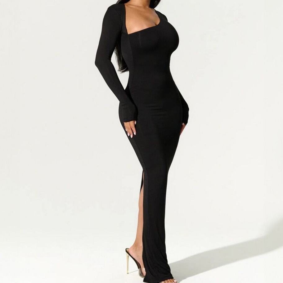 เดรสยาวผู้หญิงคุณภาพสูงแบบขายส่ง ปรับแต่งได้ตามต้องการ รุ่นใหม่ประจำฤดูใบไม้ร่วง แขนยาว คอเฉียง แฟชั่น Y2K ดีไซน์ผ่าหลัง ทรงสวยเป็นธรรมชาติ