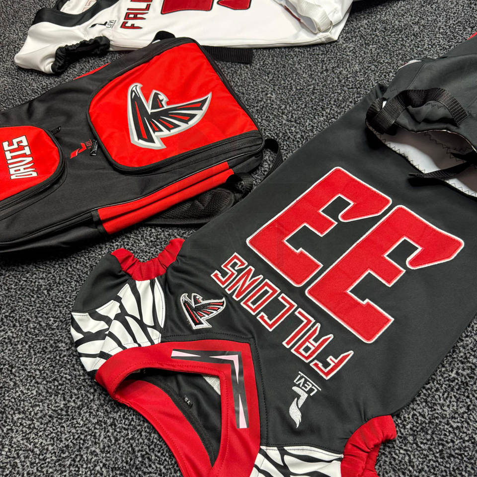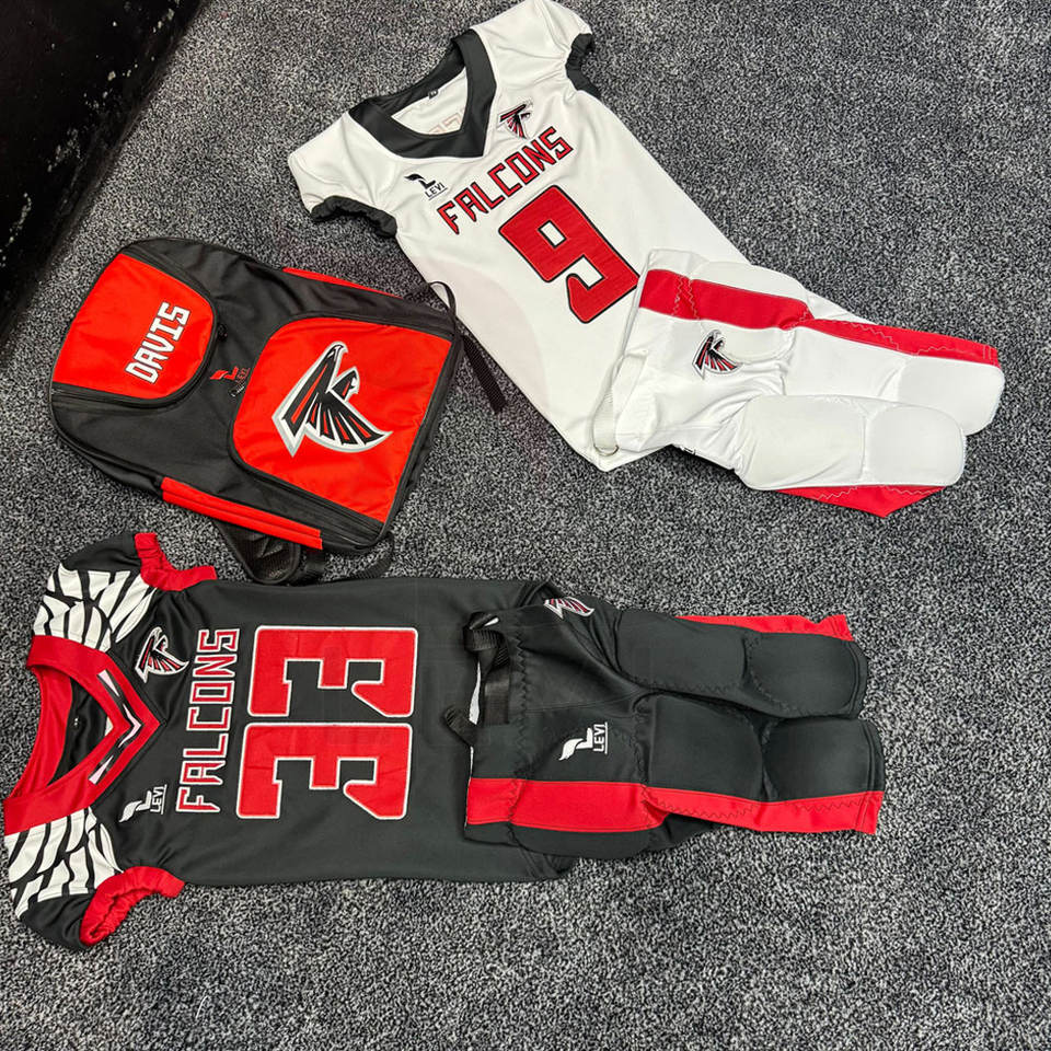 ชุดฟุตบอลอเมริกันแบบขายส่ง ปรับแต่งโลโก้ได้ ผลิตจากโพลีเอสเตอร์ 100% ชุดทีมพร้อมชื่อและหมายเลข เสื้อและกางเกงฟุตบอล